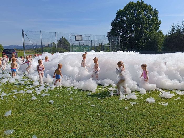V červnu nás navštívilo divadlo s Cirkusovou pohádkou a děti ze školy s paní učitelkou Maděrovou nám zahrály představení Logohrátky. Navštívila nás paní knihovnice a vyrazili jsme na dlouhou vycházku k rybníku. Předškoláci ukončili plavání v Lanškrouně a ve velké míře jsme využívali bazén na zahradě MŠ. Proběhla sportovní olympiáda a velčáci si trénovali grafomotoriku nohou. Hasiči ze Starého Města připravili pro děti v rámci dne dětí pěnu. Ochutnávali jsme letní ovoce a pasovali předškoláky na školáky. Při té příležitosti jsme přespali ve školce. Byli jsme pozváni na vystoupení žáků 1. a 4. třídy, které proběhlo v tělocvičně ZŠ a nakonec jsme se rozloučili se školním rokem a předškoláky na Posledním zvonění před základní školou.
