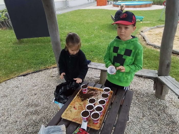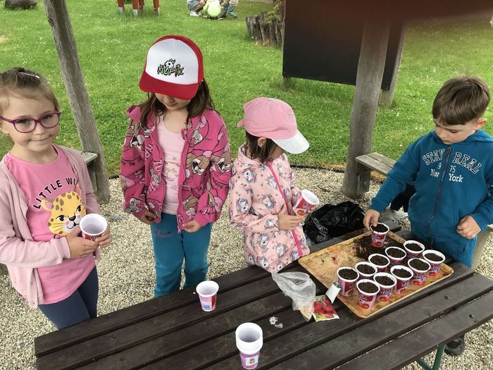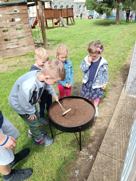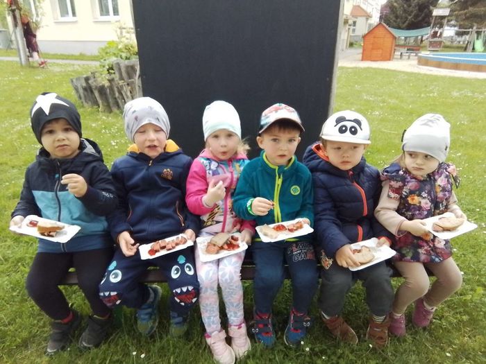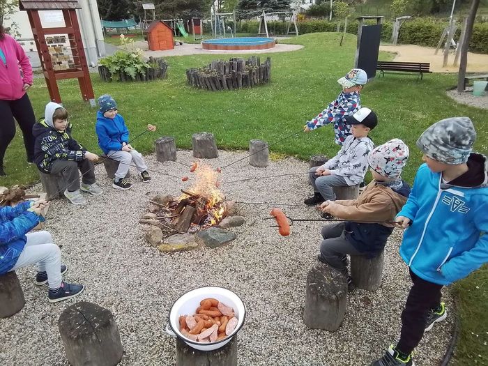 V květnu každé pondělí předškoláci jezdili do Lanškrouna - ZŠ Dobrovského - plavat na bazén. Hned 2.května jsme otevřeli zahradu a přitom opékali špekáčky. Malé děti pekly buchtu z rebarbory, ta nám vyrostla na záhoně na naší zahradě. Velčáci pak upekli pizzu a také zahradničili – zaseli hrášek a ředkvičky. Navštívila nás paní knihovnice z knihovny v Moravské Třebové a také jsme se zúčastnili Dne dětí, který připravila základní škola. Největší akcí však byl školní výlet. Tentokrát jsme se vypravili do DinoParku Vyškov.