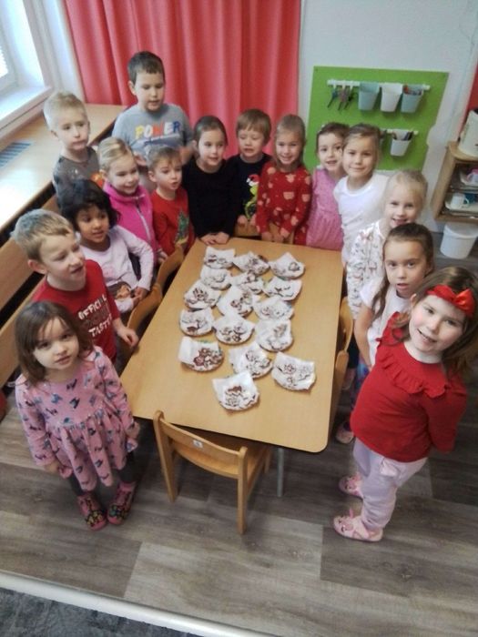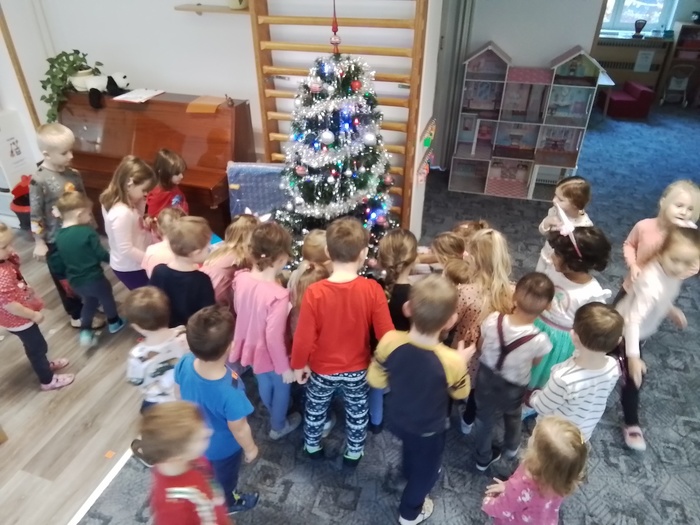 V prosinci přijela paní knihovnice a navštívil nás Mikuláš s čertem. Nazdobili jsme barborku, stromeček a perníčky. Proběhlo čertovské rojení a také besídka pro rodiče. Přišel k nám „Ježíšek“ s dárky a vydali jsme se na koncert do základní školy a do místního kostelíka za „Ježíškem“.