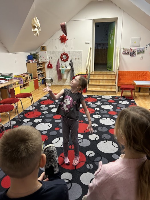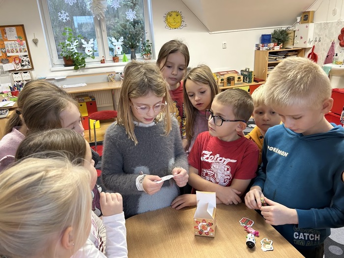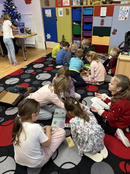 Hned na jeho začátku jsme si ozdobili vánoční stromeček, pod kterým jsme minulý týden našli hračky, které děti velmi potěšily. Každý týden jsme zapalovali svíčky na adventním věnci a četli si o vánočních svátcích z knihy Lidové tradice. Postupně jsme otvírali adventní kalendář, který neukrýval jen drobné dárečky, ale letos také úkoly, které jsme společně plnili. Například jsme krmili ptáčky, zpívali vánoční písně a koledy, zdobili perníčky nebo natrhali barborky, které nám v těchto dnech krásně vykvetly.