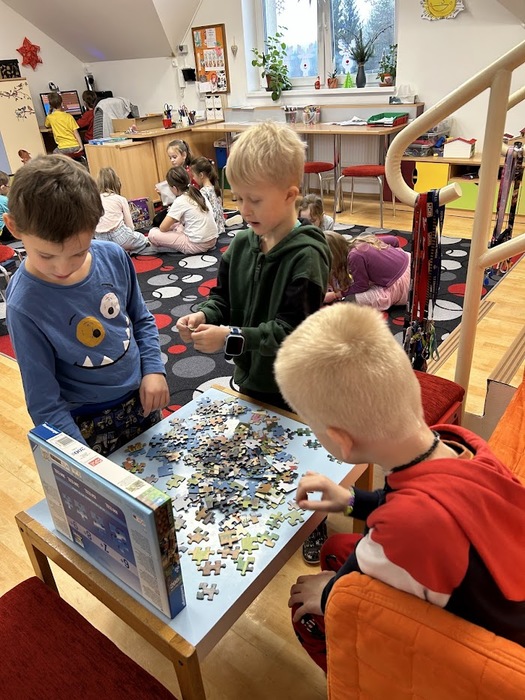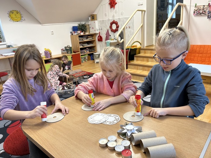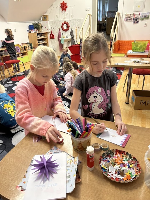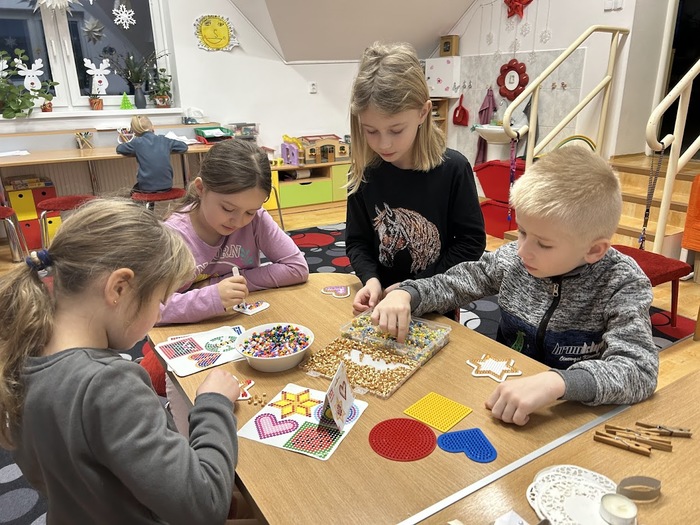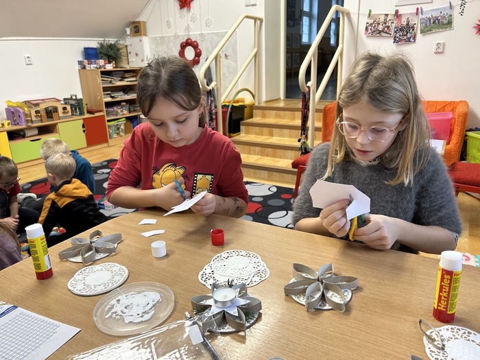 Děti si nakreslily veselé čerty, vyráběly 3D hvězdy, přáníčka, svícny i ozdoby ze zažehlovacích korálků. Tento týden se těšíme na vánoční kvíz a bingo o ceny.