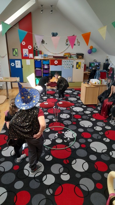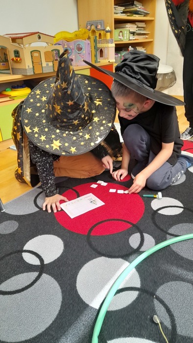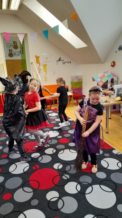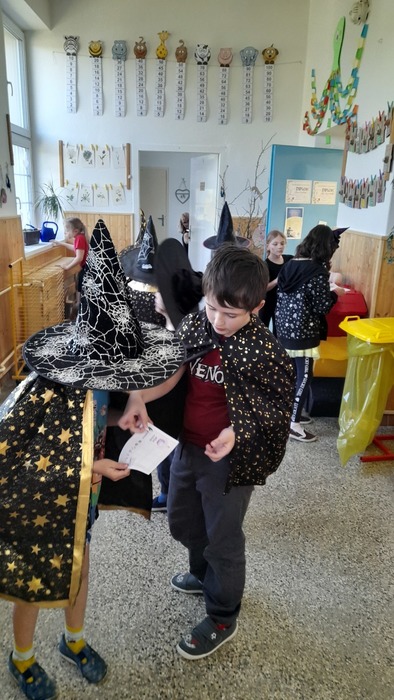 V úterý 30. dubna se ve školní družině oddělení A konala čarodějnická diskotéka. Děti si užily spoustu zábavy při tanci a netradičních hrách. Lovily pavouky, přenášely můry pomocí brčka, hledaly správné ingredience do kouzelných lektvarů, namotávaly košťátka, skládaly obrázek čarodějnice, … Vyzkoušely si smetákový a kloboukový tanec a nemohlo chybět ani oblíbené bingo o ceny.