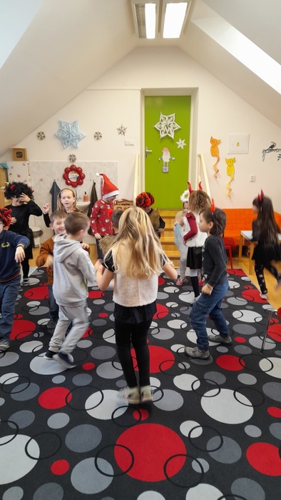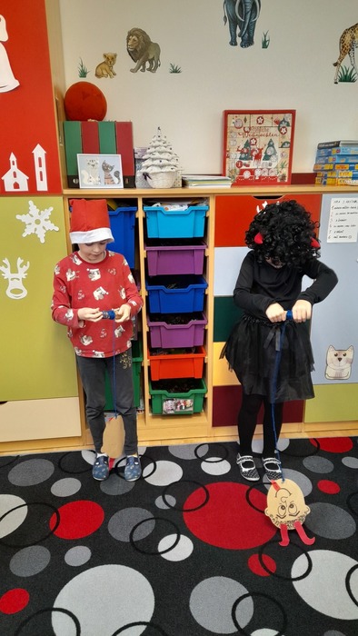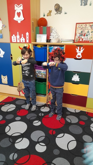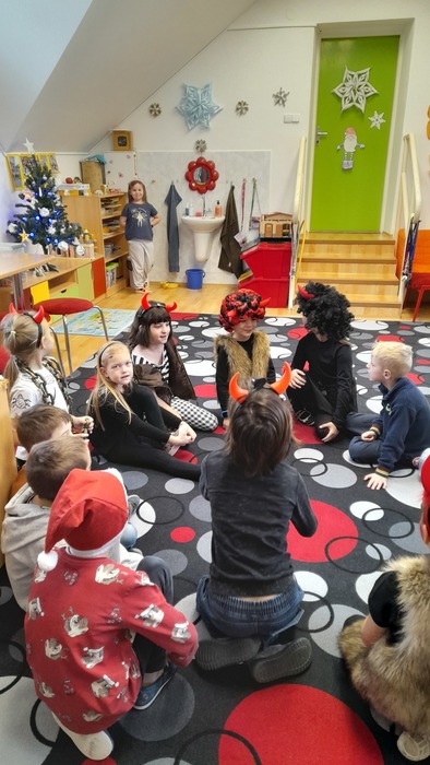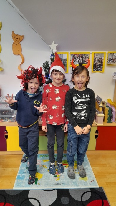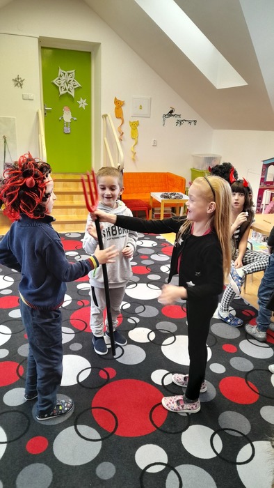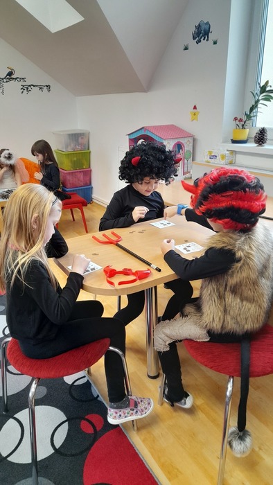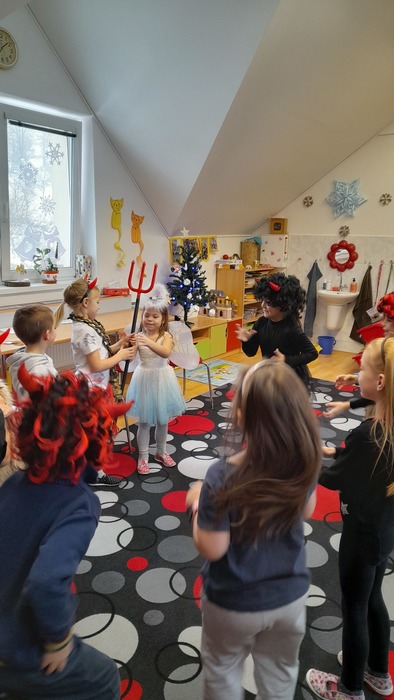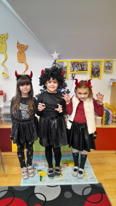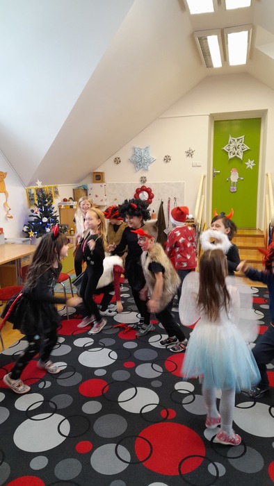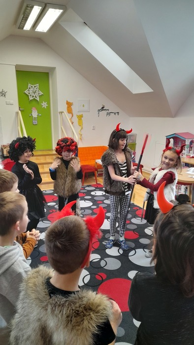 V úterý 5. prosince se ve školní družině oddělení A konal čertovský rej. Děti přišly převlečené za čertíky a čertice, Rozárka za andílka. Prvňáčci a druháčci se vyřádili při tanci, nechyběly ani zábavné hry a soutěže – např. namotávání čertů, posílání vidlí v kruhu, skládání pekelného obrázku, házení uhlíky na cíl, … Na závěr jsme si zahráli bingo o drobné ceny a vyhlásili nejhezčí převleky. Dětem se nejvíce líbil čertík Denny a čertice Míša.
