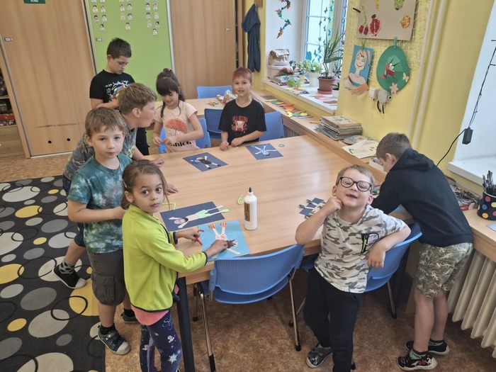 Společně s dětmi jsme stihli oslavit Den otců a vyrobit pro tatínky krásné papírové kravaty. Na nástěnku jsme připravili potápěčskou koláž z fotek a povídali si o plánovaném cestování během léta.