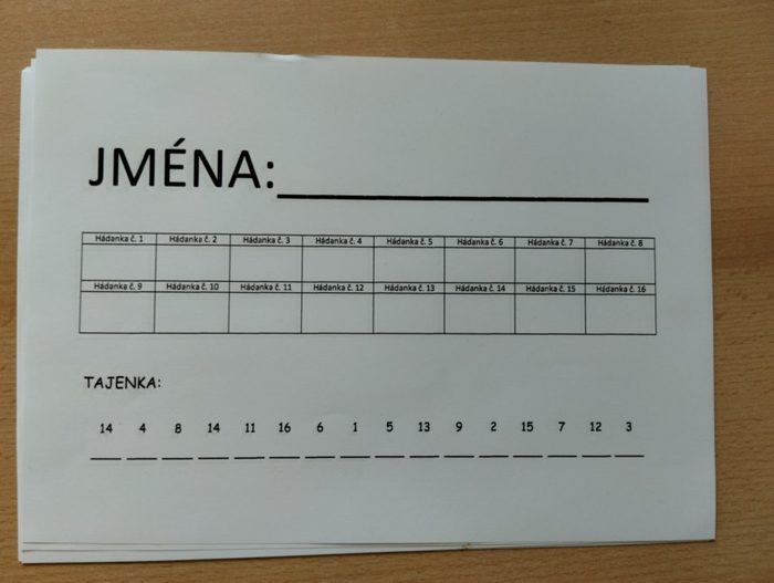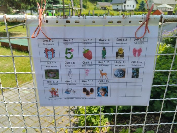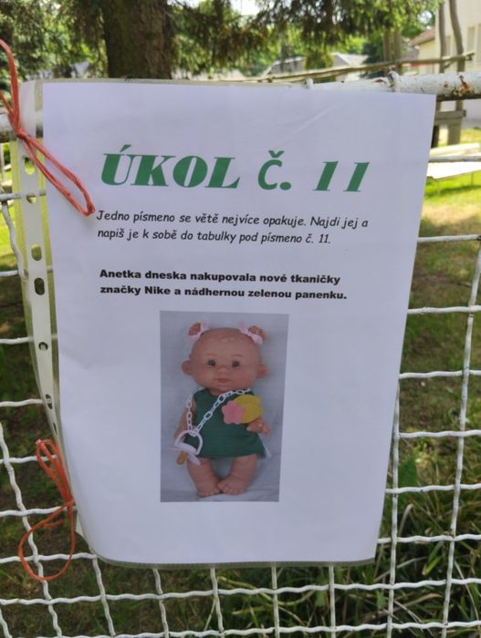 Pro žáky bylo připraveno celkem 16 stanovišť. Na nich děti namáhaly hlavy s nejrůznějšími úkoly. Poznávaly retro hračky, počítaly, hledaly shodné stíny nebo správnou cestu v bludišti a řešily další logické hádanky. Do tajenky byl uschován vzkaz „Jste naše zlatíčka“, se kterým jako první přiběhla děvčata z 5. ročníku – Danielka Brabcová a Nikolka Lušovjanová. Za odměnu si odnesla čokoládu, bonbony, propisku a balonek. Další odměny pak následovaly i pro ostatní týmy – druhá byla děvčata ze 4. třídy – Nelinka Práčková, Kristýnka Košárková a Emička Barvová. Bronzová příčka patřila zástupcům ze 3. třídy – Lukášku Pánikovi, Anetce Dvorské a Alence Knížkové. Na čokoládě si nakonec ale pochutnaly všechny děti a domů si ještě odnesly ufounský talíř z jedlého papíru.