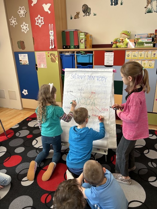 V pátek 20. března jsme si ve školní družině oddělení A připomněli Světový den vody. Vytvořili jsme si myšlenkovou mapu a povídali si o tom, proč je voda důležitá a kde se vyskytuje. Také jsme si řekli, jak s vodou šetřit. Velký úspěch měly zábavné pokusy a hry s vodou, které dětem hravou formou přiblížily vlastnosti vody.