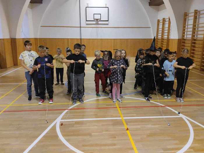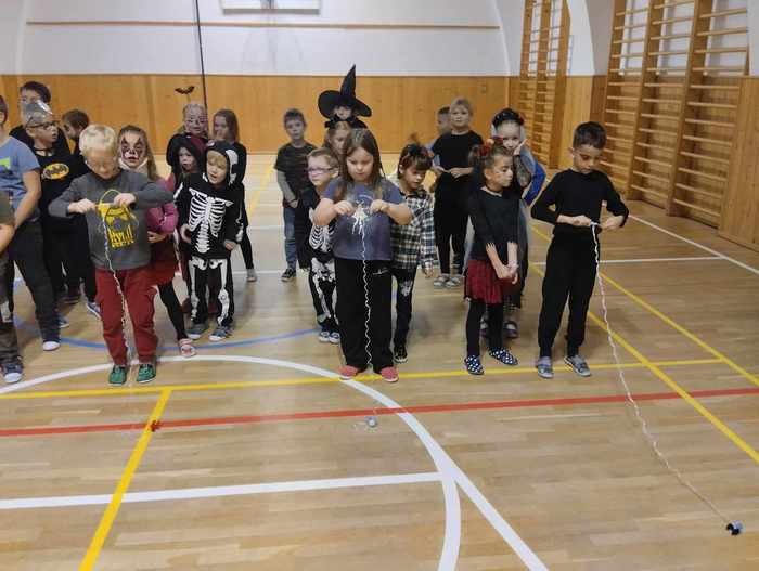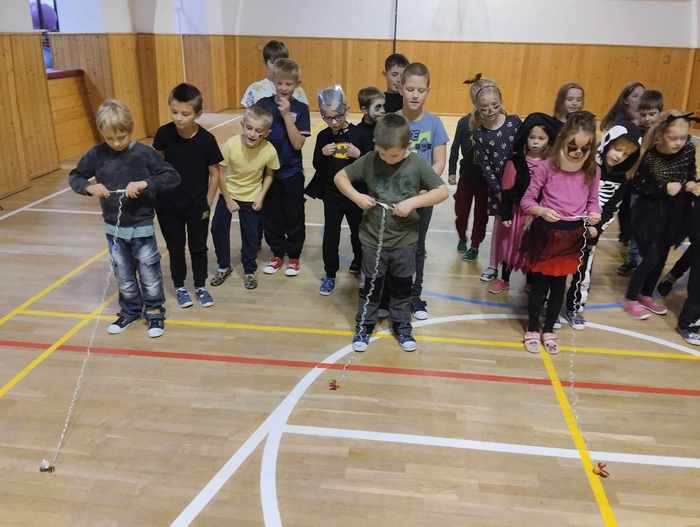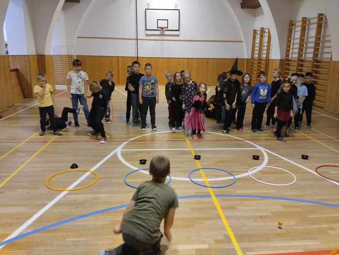 Skvělé odpoledne plné zábavy a soutěžení proběhlo 31. října ve školní družině v oddělení B. Volná tělocvična se doslova otřásala pod hlasitým povzbuzováním soutěžících z 1., 2. a 3. třídy. Lov pavouka, házení dýněmi a hádání obsahu dýní nám přinesly spoustu smíchu a napětí. Soutěžení ve dvojicích v přenášení dýní bylo pro děti náročné, ale běžecká soutěž s krádeží dýně byla skvělým závěrem našeho odpoledne! Každá disciplína byla odměna sladkostmi, za které děkujeme SRDPŠ!