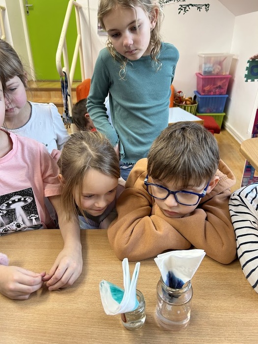 Vyzkoušeli jsme si také chromatografii, kdy se děti seznámily se vzlínáním vody a rozkladem barev.
