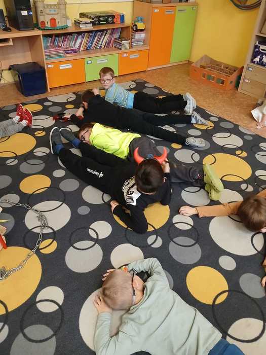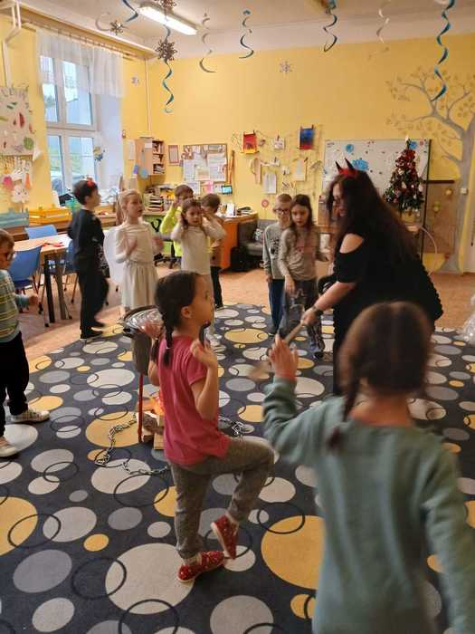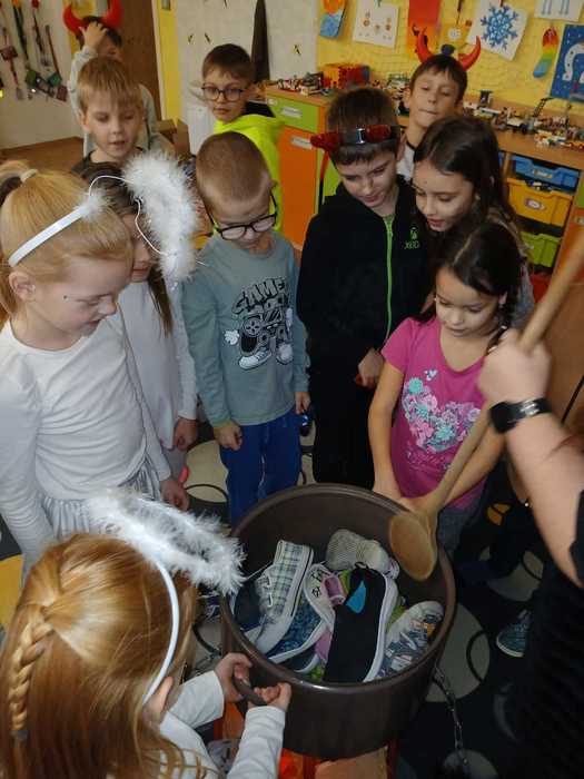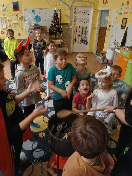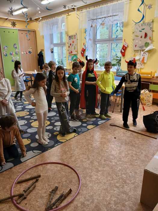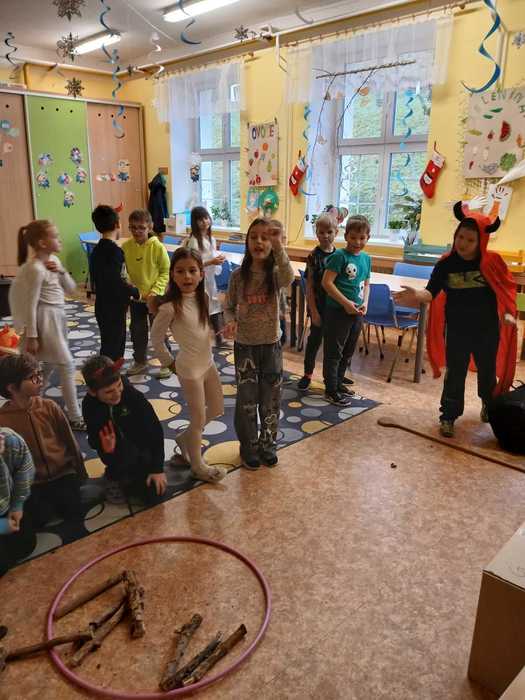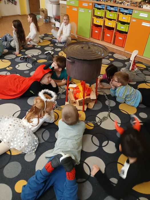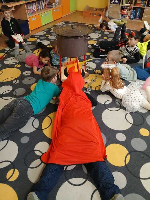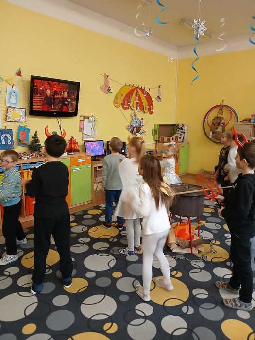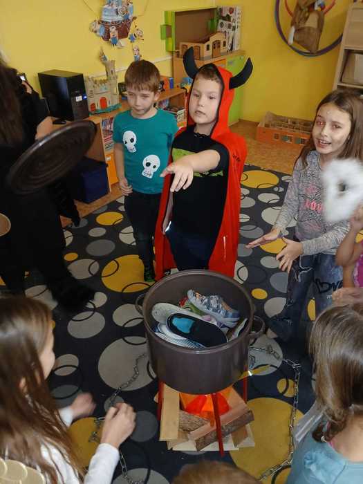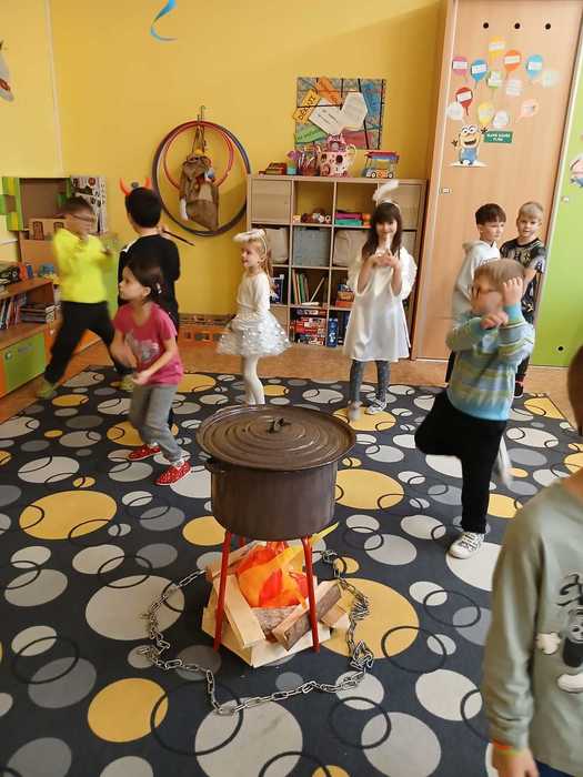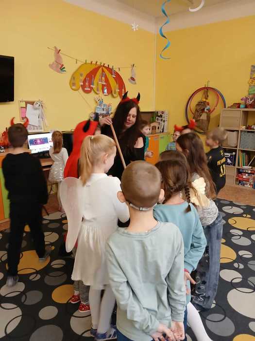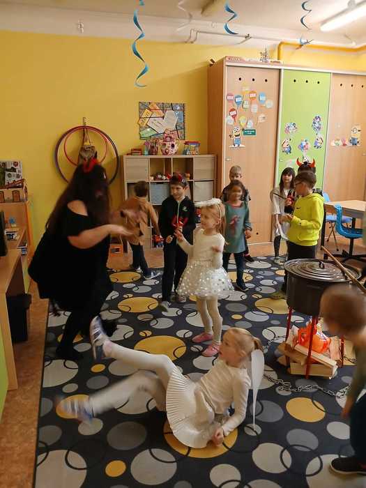 Hned na začátku nám samotný Lucifer poslal první pekelnou výzvu. Děti měly vyjmenovat, co dělá čerta čertem, a poté nakreslit čerta nebo jeho hlavu. Po splnění úkolu následovalo pořádné čertovské tancování.
