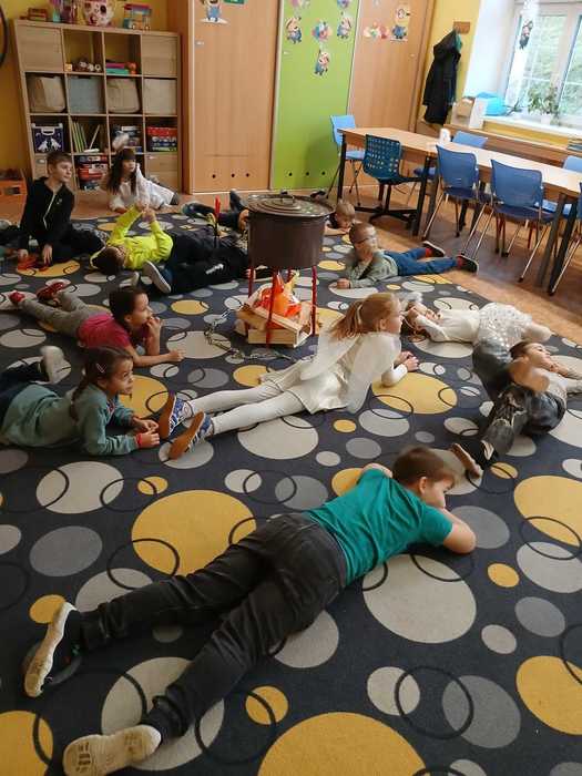 A protože čerti dostali hlad, uvařili jsme si společně bačkorovou polévku. Čertíci ji tak poctivě dochutili chilli, že mi tekly slzy. Po jídle, hrách i tanci jsme se všichni nakonec uchýlili k zaslouženému odpočinku.