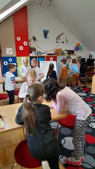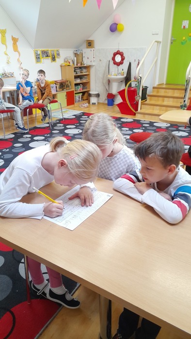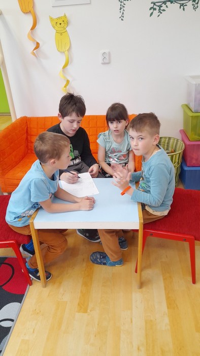 Ve středu 17. dubna se ve školní družině oddělení A konal „Pohádkový kvíz“. Děti se samy rozdělily do pěti týmů a vymyslely si jméno. Kvíz byl rozdělen do sedmi kol. Po každém kole jsme si odpovědi společně vyhodnotili a zapsali získané body.