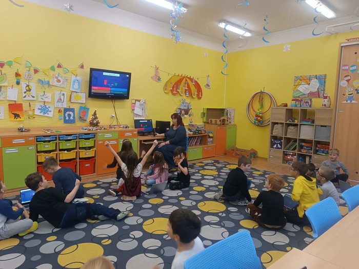 Celé oddělení s napětím očekávalo vánoční nadílku, která k nám dorazila už v pondělí 15. prosince a přinesla dětem velkou radost i nadšení. Poslední prosincový týden jsme si zpestřili speciálními vánočními kvízy v aplikaci Kahoot, ke kterým jsme si zapůjčili chromebooky. Děti si tak zábavnou formou procvičily své znalosti, spolupráci i práci s digitální technikou.