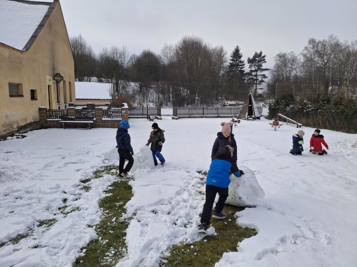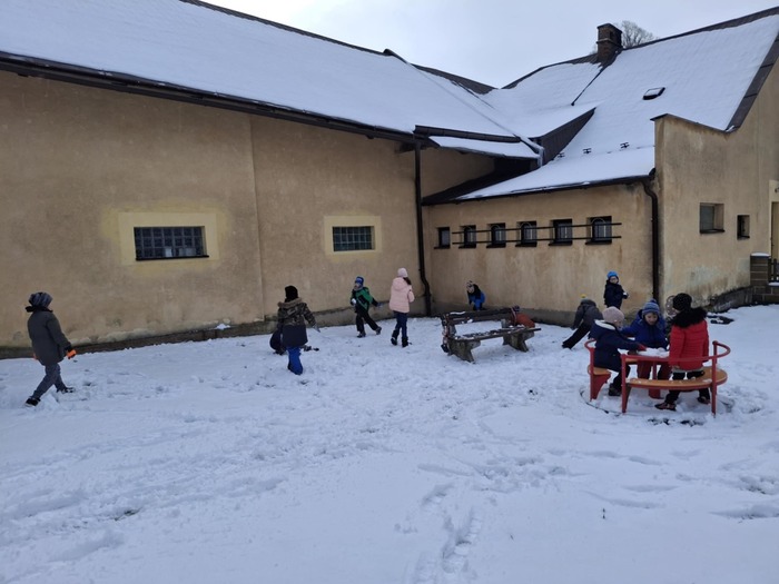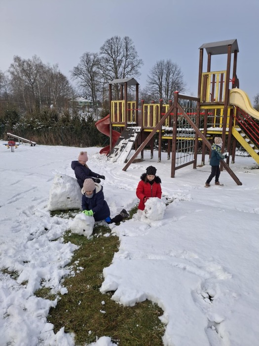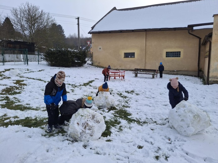 Konečně jsme se dočkali sněhu! Děti ze školní družiny B si naplno užívaly zimní radovánky. Na obecním hřišti se konala velká koulovačka, která vyvrcholila soubojem o největší sněhovou kouli.