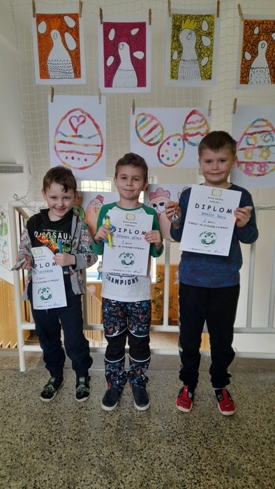Ve středu 29. března se ve školní družině oddělení A uskutečnil turnaj ve stolním fotbálku, kterého se zúčastnilo 17 prvňáčků a druháčků. Na třetím místě se umístil Míra Sekanina, druhou příčku obsadil Tomášek Pánik a první místo získal Štěpánek Němec. Vítězové dostali diplom a drobné odměny.