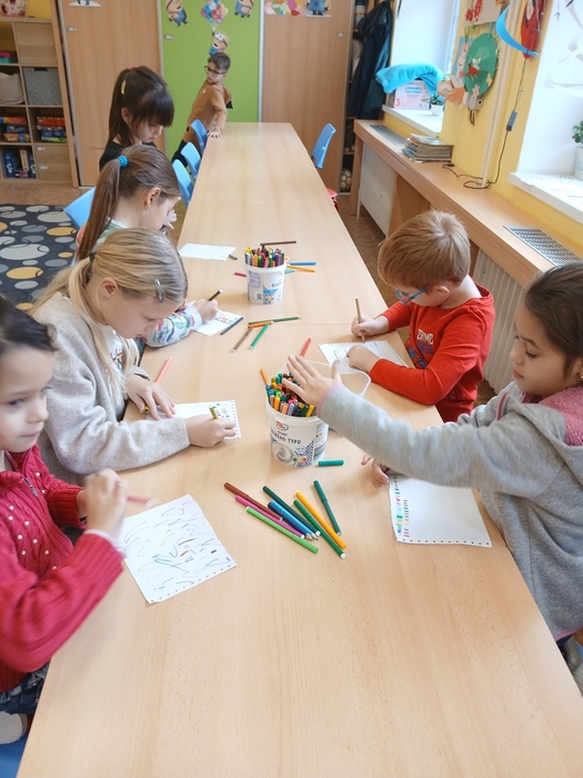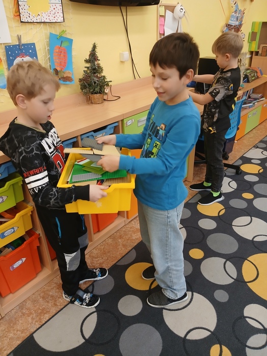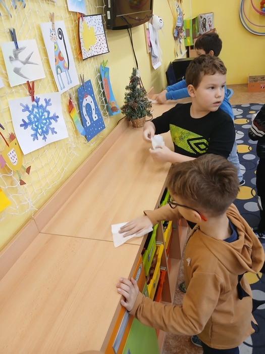 Práci si rozdělily mezi sebe – některé děti rozkládaly stavebnici Lego, jiné srovnávaly fixy a zkoušely, zda píší, další utíraly povrchy skříněk. Všechny se do úklidu zapojily s nadšením a radostí.