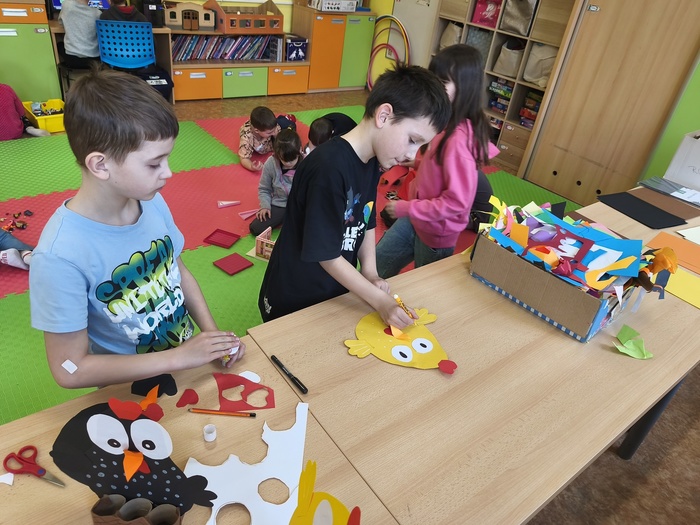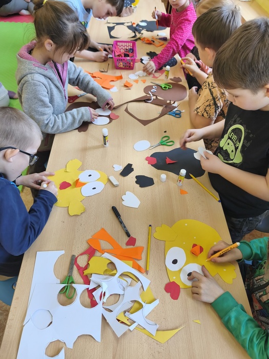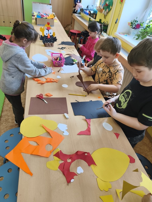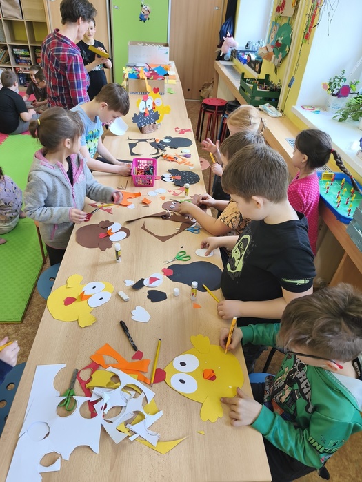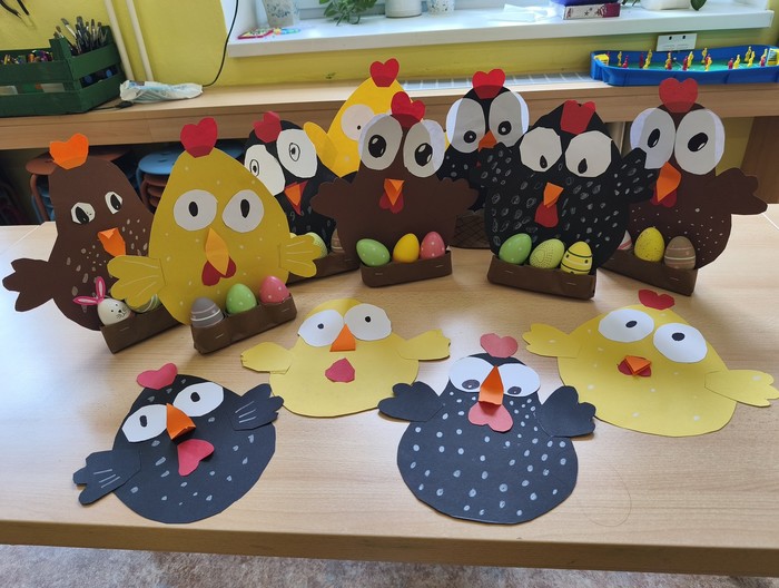 Blíží se Velikonoce a děti ze ŠD B měly možnost vyrobit si velikonoční slepičku. Nejprve si vybraly šablonu, kterou obkreslily na barevný papír a poté ji vystřihly. Následně slepily jednotlivé části, dozdobily je a slepičky byly na světě.