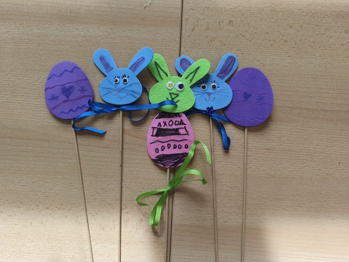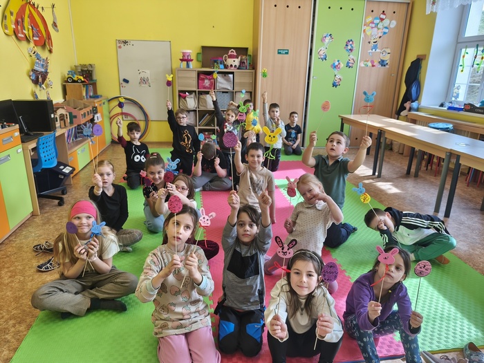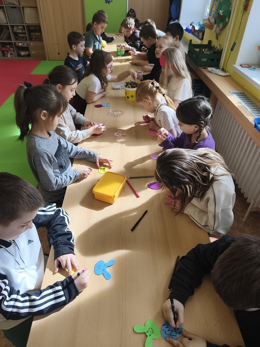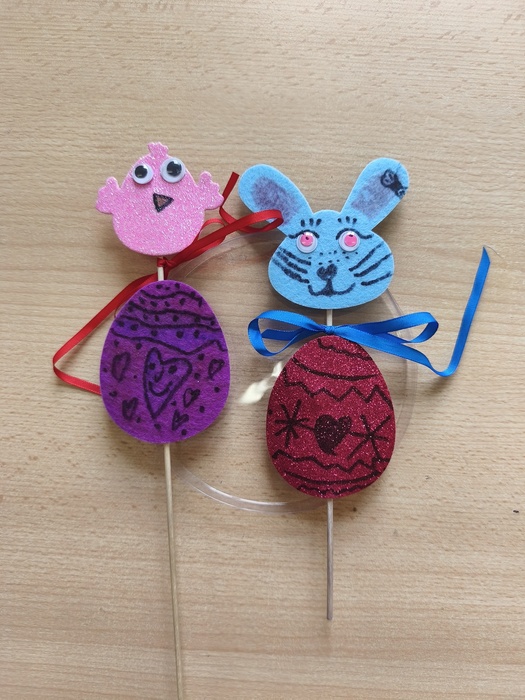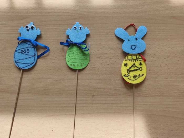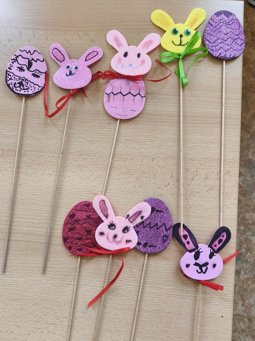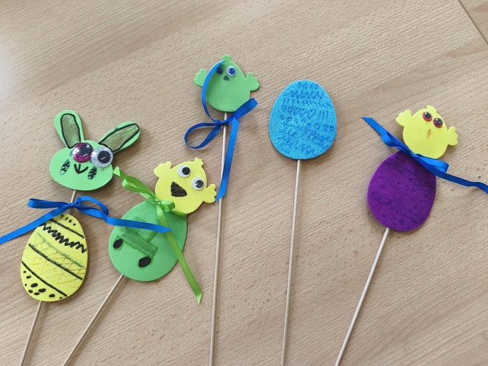 Blíží se Velikonoce a děti ze ŠD B si vyrobily krásné velikonoční zápichy. Při tvoření popustily uzdu své fantazii a originálně dozdobily kuřátka, vajíčka i hlavičky zajíčků. Jejich výrobky doplnily barevné mašle, které podtrhly celkovou hravost a kreativitu.