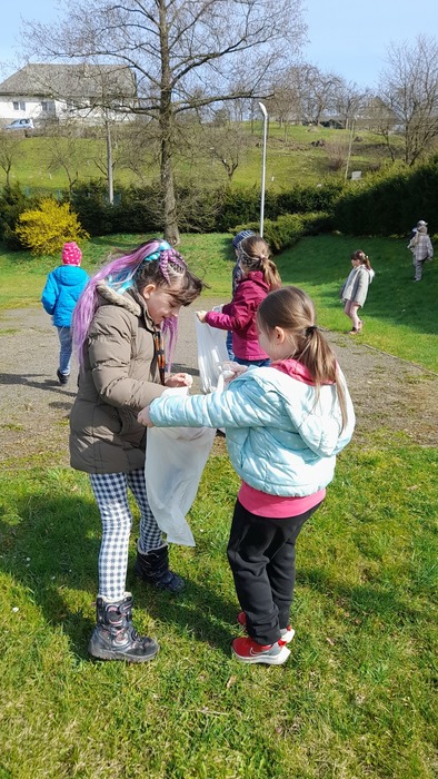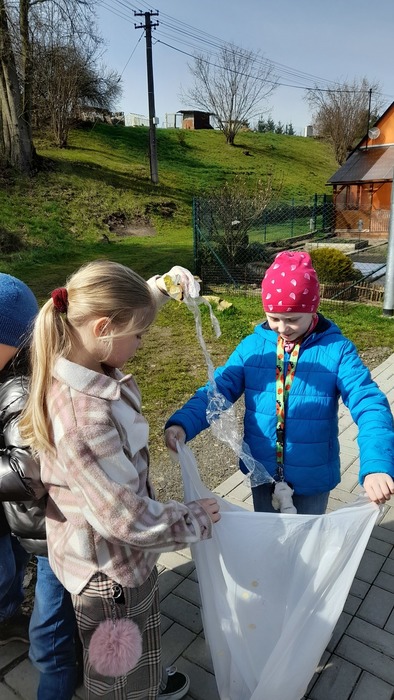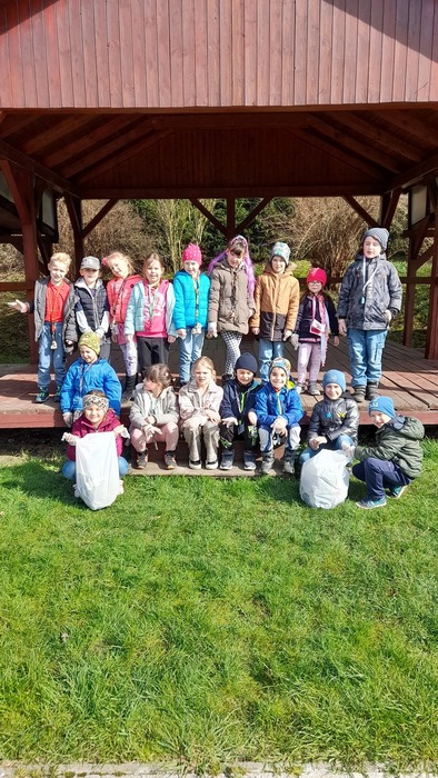 Ve středu byl první jarní den, a proto jsme se jako každý rok pustili do úklidu okolí školy a autobusové zastávky. Děti se rozhodly uklidit i louku za dětským hřištěm, kam si často chodíme hrát a kde se to odpadky jen hemžilo.