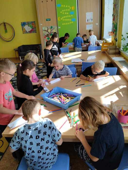 Děti si vlaštovky vyráběly hned po obědě. Aby nebyly jejich papírové modely nudné, vyzdobily si je podle své fantazie.