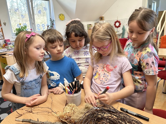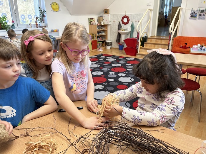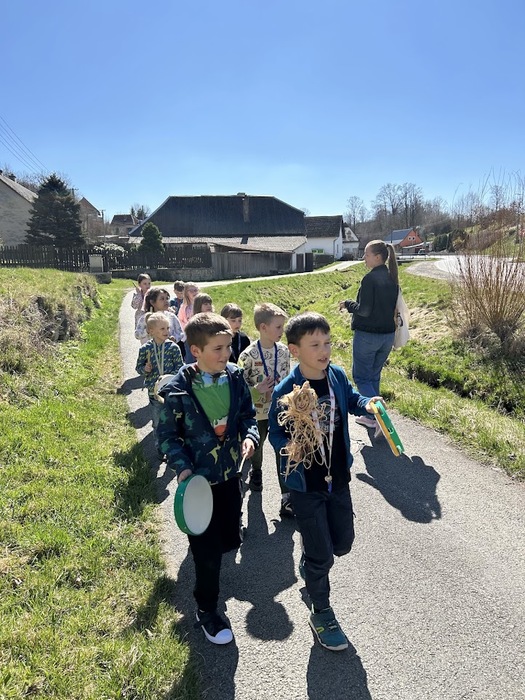 Ve školní družině oddělení A jsme si společně vyrobili malou Morenu z přírodního materiálu, použili jsme dřevo, lýko a koudel. Za pokřiku „Zimo, zimo, táhni pryč!“ a zpěvu písně Přišlo jaro do vsi, který jsme doprovázeli hrou na rytmické nástroje, jsme ji vhodili do potoka.