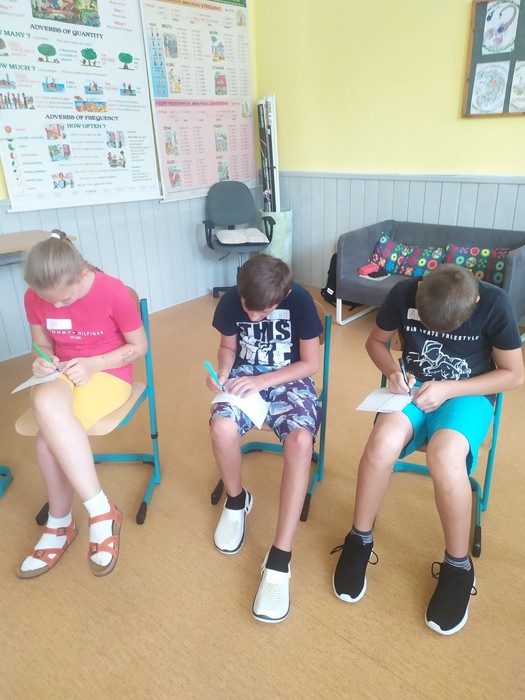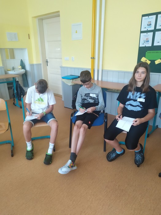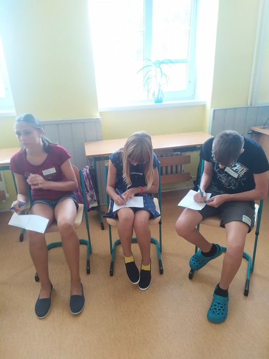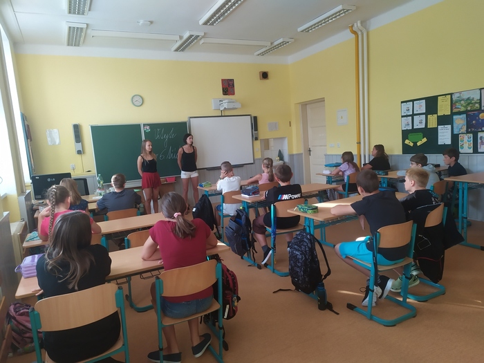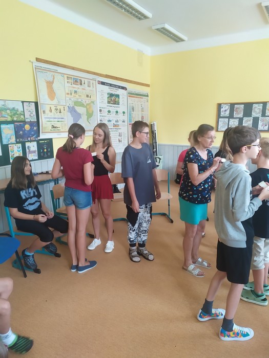 Z časových důvodů nebylo možno stihnout všechny naplánované aktivity, ale děti o ně určitě nepřijdou. V hodině výchovy ke zdraví si například hned ve středu napsaly dopis do „budoucnosti“, respektive o sobě a sami sobě, který si otevřou za 4 roky, tedy v IX. třídě.