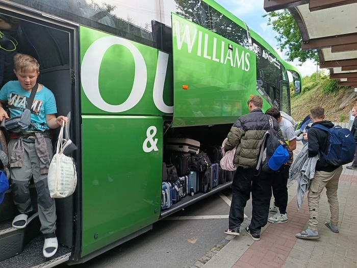 Po vylodění jsme se pohodlně usadili v autobuse a vydali se na dlouhou noční cestu Evropou. Ráno nás vítalo slunečné Německo a cesta příjemně ubíhala. Unavení, ale šťastní, jsme odpoledne dorazili zpět do Třebařova, kde už na nás netrpělivě čekali rodiče. Objímání, úsměvy a první vyprávění zážitků se neslo celým parkovištěm.