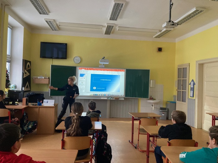 V rámci prevence sociálně patologických jevů se ve čtvrtek 7. 12. 2023 uskutečnila beseda pro žáky 6. třídy na téma kyberšikana. Do školy za námi přijela policejní preventistka pro Územní odbor Svitavy por. Mgr. Nikol Zavřelová.