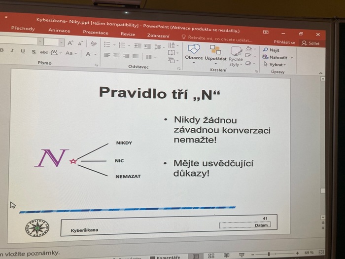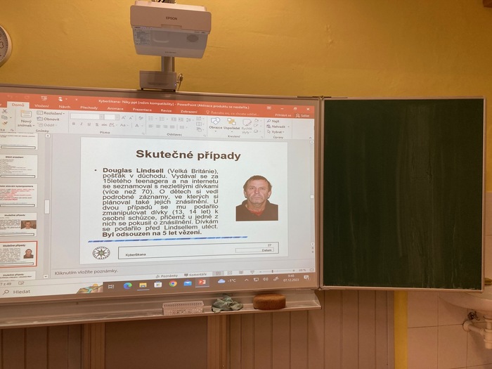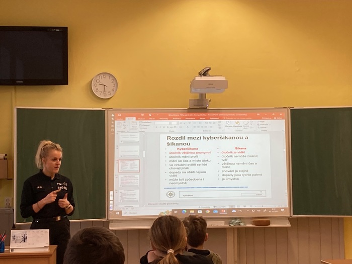 Kyberšikana (šikanování jiné osoby pomocí informačních technologií – internetu, mobilních telefonů apod.) je velmi aktuální téma a bohužel se s touto formou šikany setkalo mnoho dětí. Šesťáci byli poučeni také o tzv. kybergroomingu, ve kterém se internetoví útočníci snaží získat důvěru oběti. Tu pak přimějí k osobní schůzce, na které může dojít i k násilí.