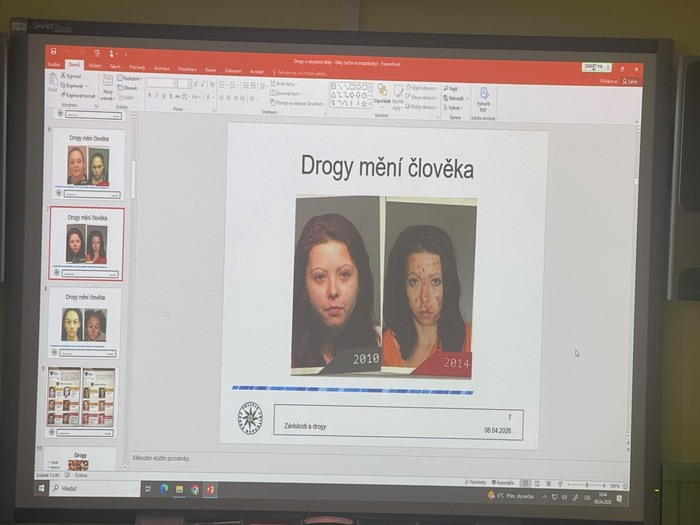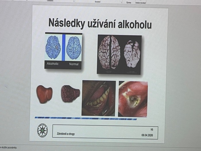 Součástí programu byla také praktická ukázka se simulační pomůckou, která přiblížila žákům zkreslené vnímání člověka pod vlivem omamných látek. Osmáci a deváťáci tak měli možnost lépe pochopit, jak nebezpečné může být jejich užívání například při řízení nebo v běžném životě.