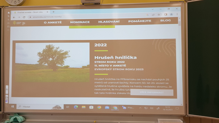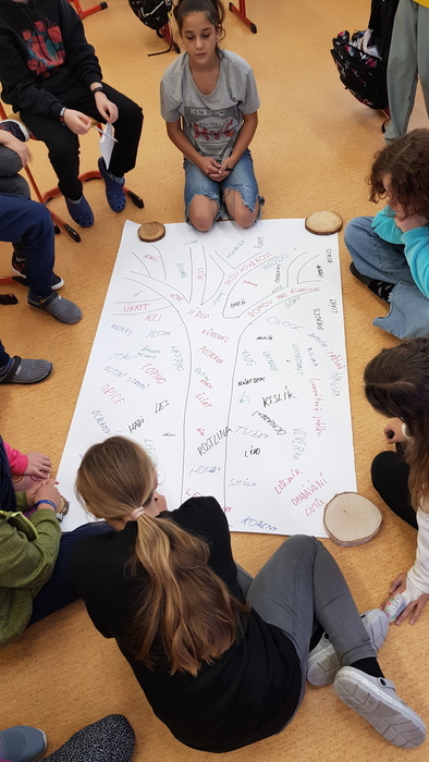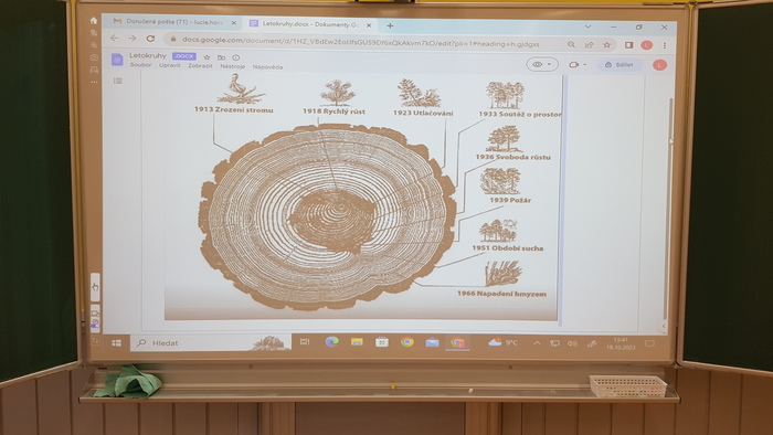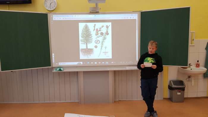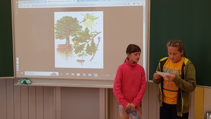 Den stromů se každoročně slaví 20. října, ale se šesťáky jsme ho oslavili již 19. října ve dvou vyučovacích hodinách. Na začátku proběhl brainstorming, kdy se všichni žáci aktivně zapojili a sršeli nápady. Seznámila jsem je s anketou Strom roku, kam může každý z nás přispět. Poté se děti dozvěděly, co jsou letokruhy a co vše z nich lze vyčíst. Což si poté všichni prakticky vyzkoušeli na připravených vzorcích. V další vyučovací hodině dvojice vyhledávaly zajímavosti o daných stromech, které později prezentovaly ostatním.