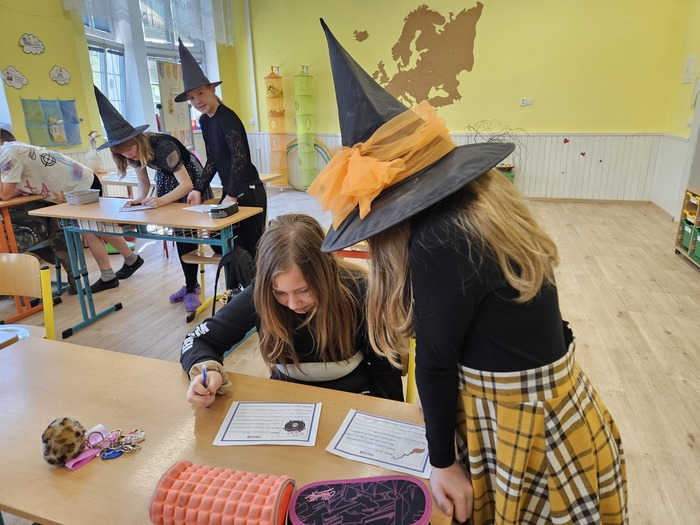 Své komunikační schopnosti si žáci procvičili pomocí konverzačních kartiček na téma čarodějnice. Při tvorbě netradičních inzerátů předvedli kreativitu – prodávali létající košťata, hledali ztracené kočky nebo poptávali vzácné kouzelnické knihy.