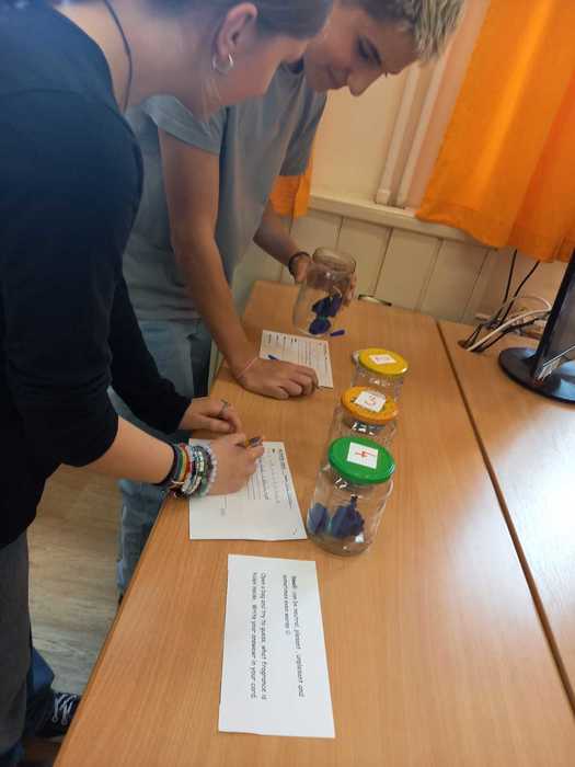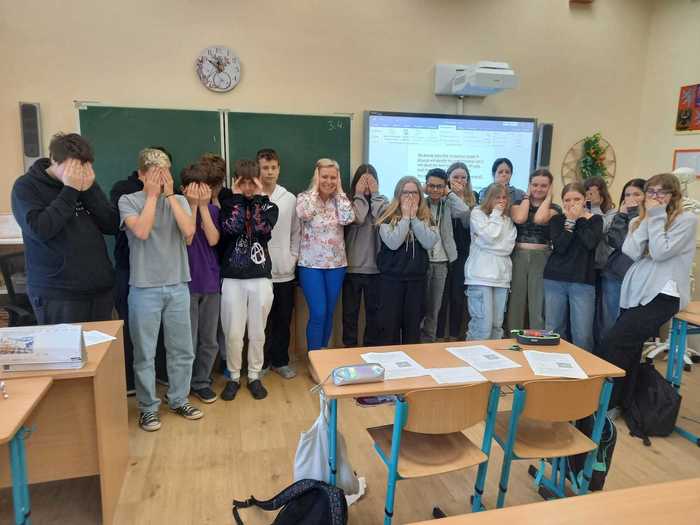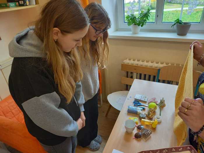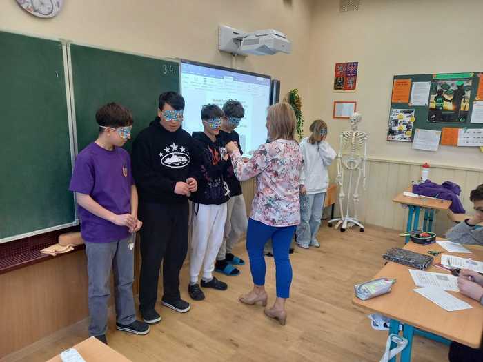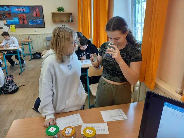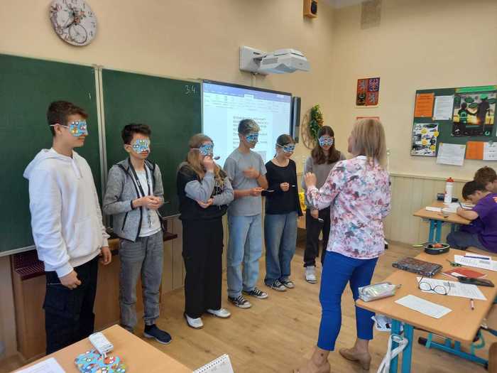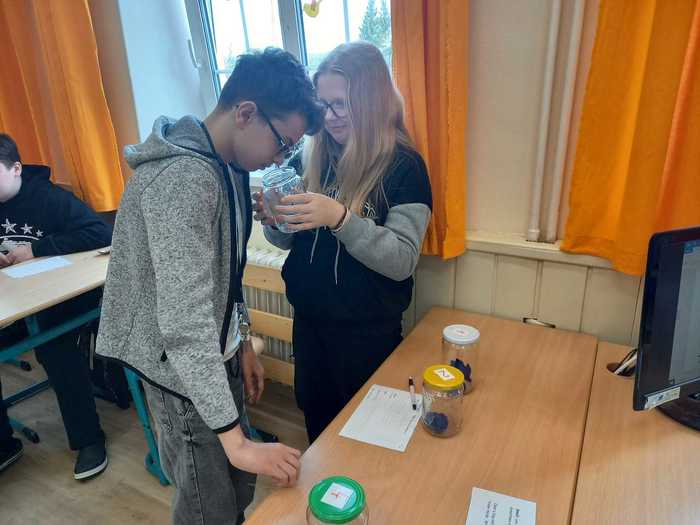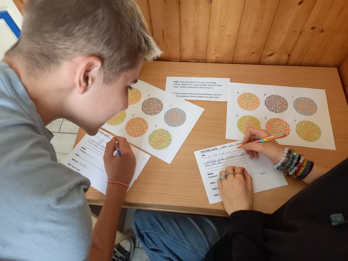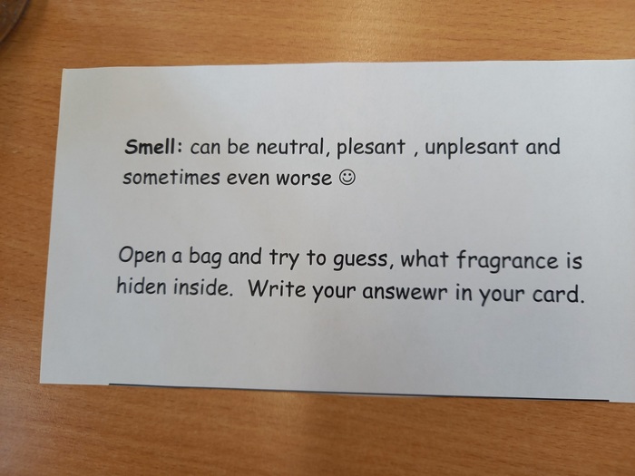 This was followed by a test of sight connected with memory and also a test of color perception. Everyone also tested their sense of smell on several scents (cinnamon, onion, eucalyptus ointment and the teacher's favorite perfume J).