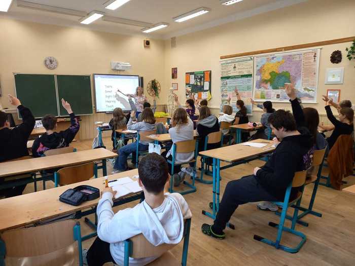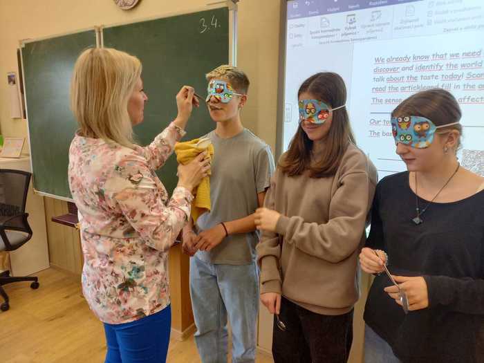 Using a QR code in worksheets, we played a video that helped us test the age of our hearing. We have found the results very interesting as some of the ear ages double the actual age of their owner. We finished everything with a taste test, in which the students had to guess what they were eating without the help of sight (which is very important while eating). According to the well-known saying from the fairy tale: "We have a choice of tastes and what's sweet doesn't have to be salty", the menu was really varied, from homemade yogurt and marmalade to ketchup and pickles. The students passed all the tests with flying colors and we all had a good time, while learned new English expressions. We are looking forward to more fun learning together.