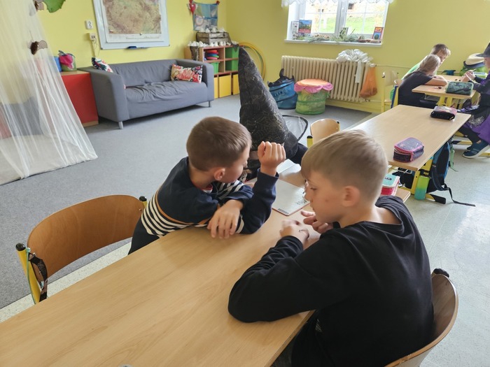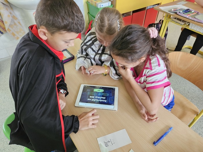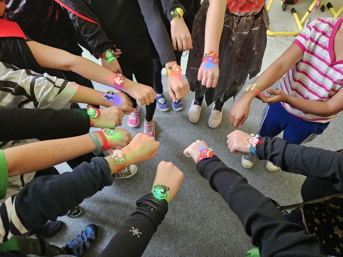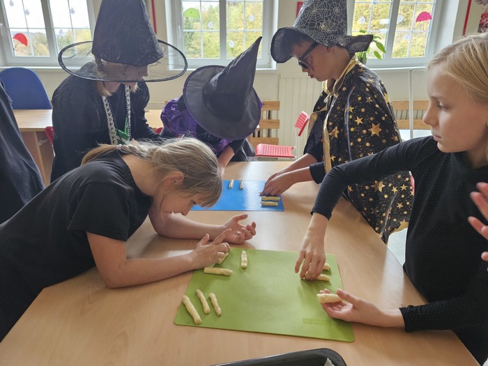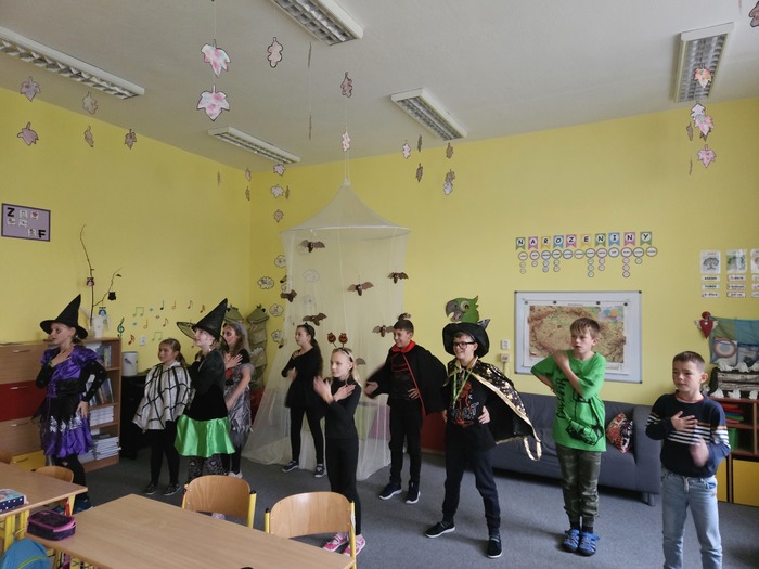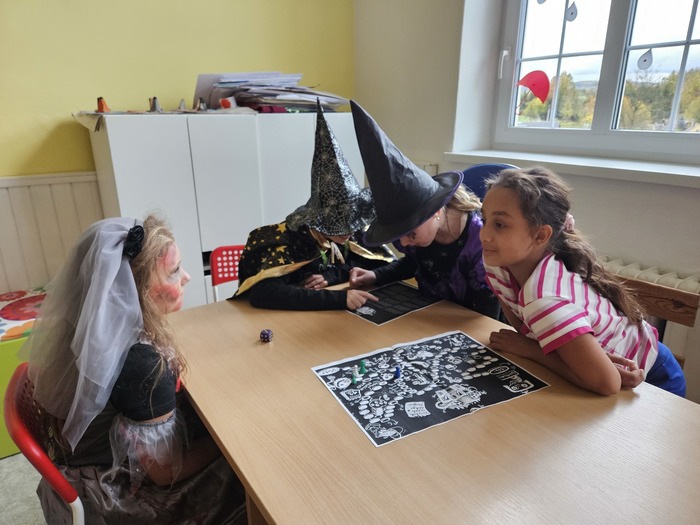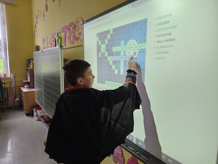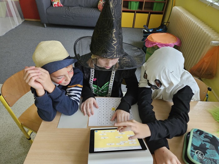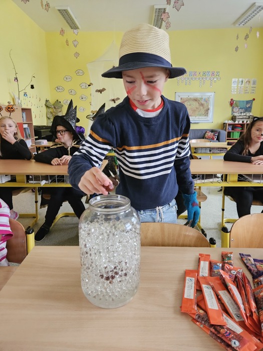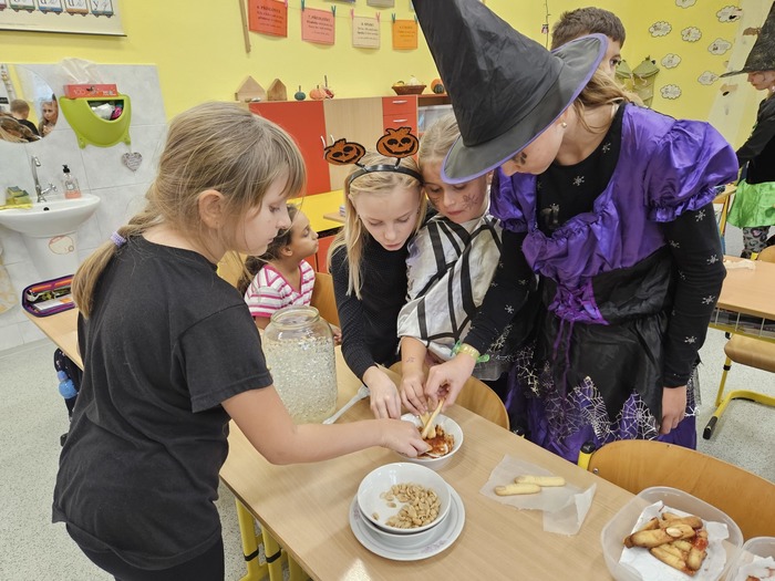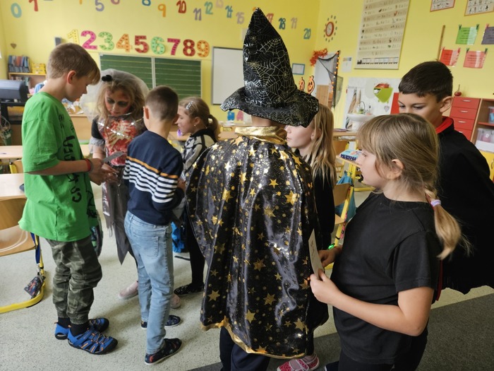 Halloweenskou náladu zažili v úterý i čtvrťáci na naší škole. Čekalo je tematické vyučování, kde se do běžných hodin připletlo počítání s duchy, překonání strašidelné únikovky, čtení hororů, tančení s kostlivci nebo pečení prstů z lineckého těsta. Děti si zahrály i deskovou hru Strašidelná škola, ve které překonaly například plešatou školnici nebo šíleného matikáře.