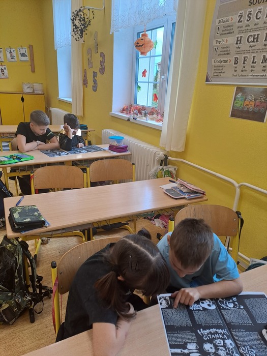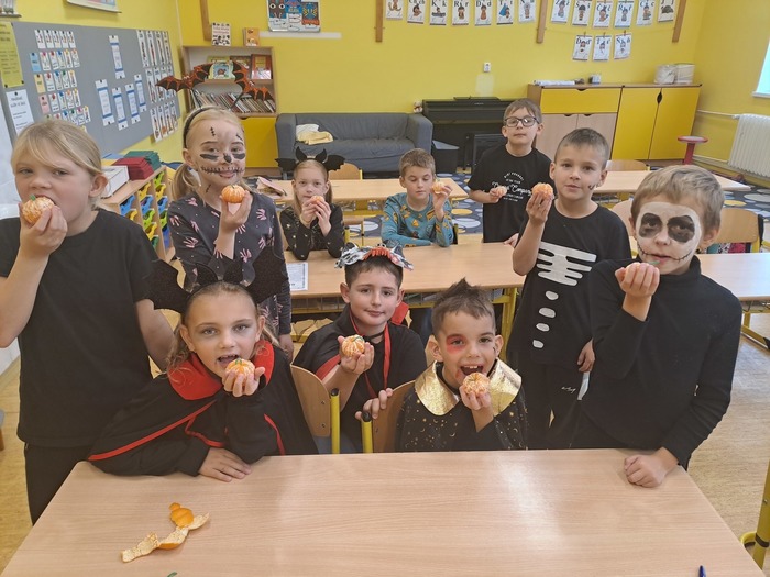I naši druháčci si ve čtvrtek 31. 10. zpestřili vyučování Halloweenem. Děti si zopakovaly abecedu, procvičily druhy vět, upevnily si sčítání a odčítání a tvořily slovní úlohy. Trénovala se paměť i postřeh.