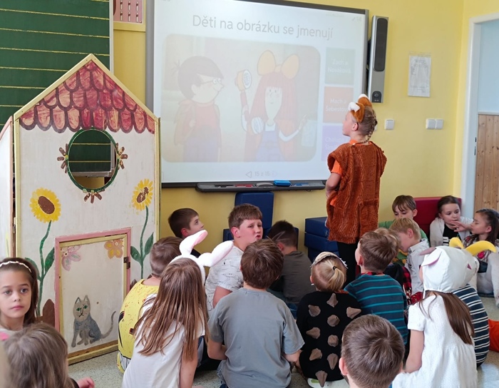 Pak proběhlo čtení s porozuměním, postupně se u interaktivní tabule vystřídali úplně všichni.