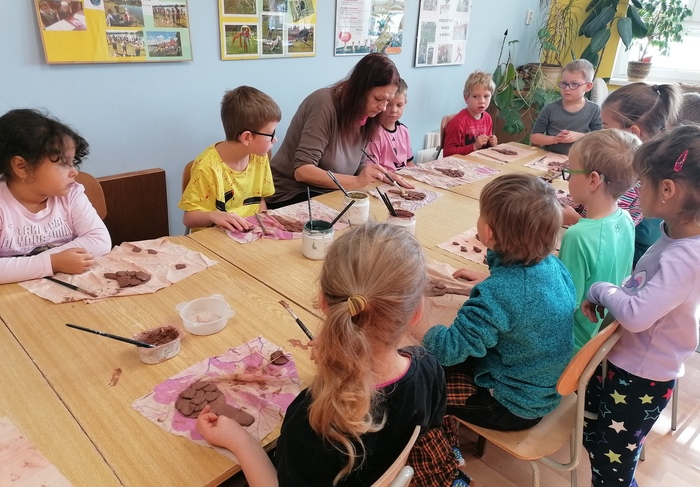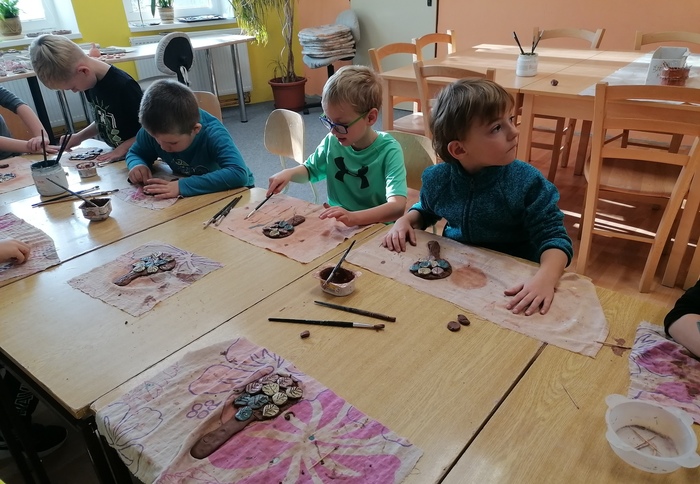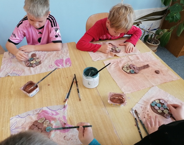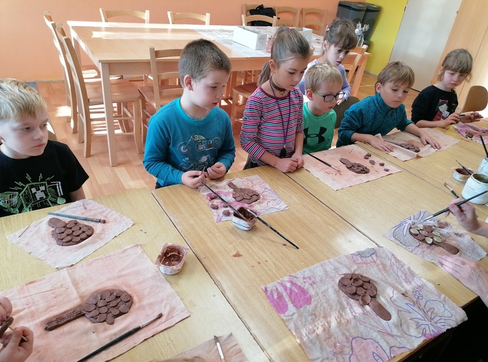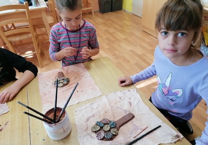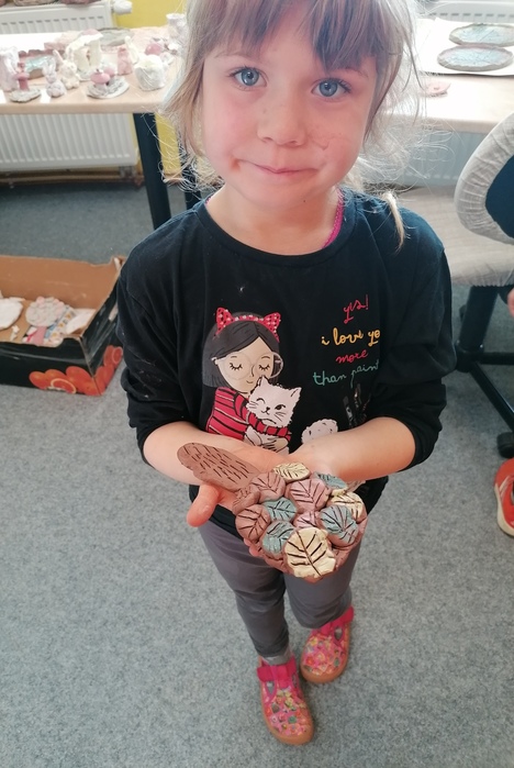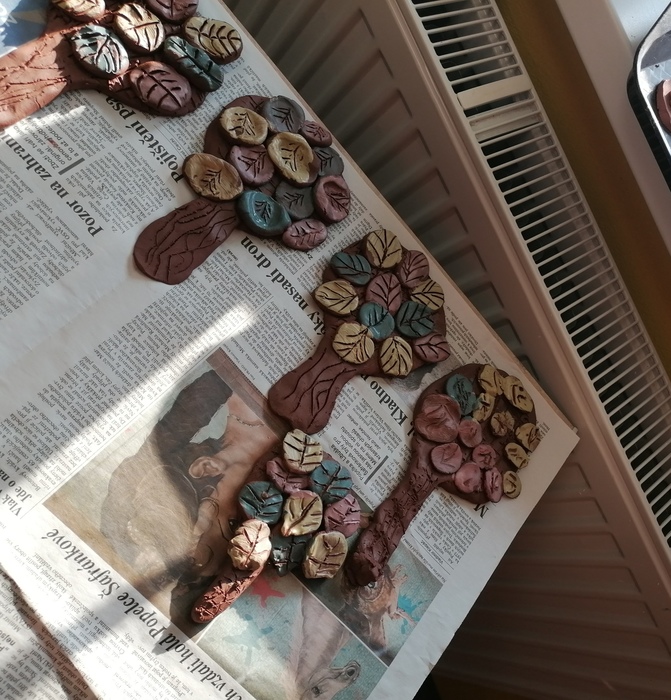 Z keramické hlíny si děti vyrobily stromy s pěknými barevnými listy. Všem se moc povedly.