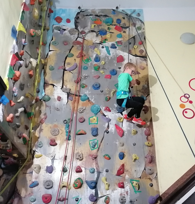 Na lezení na horolezecké stěně se ne každý těšil, někteří prvňáčci z ní měli trochu strach,