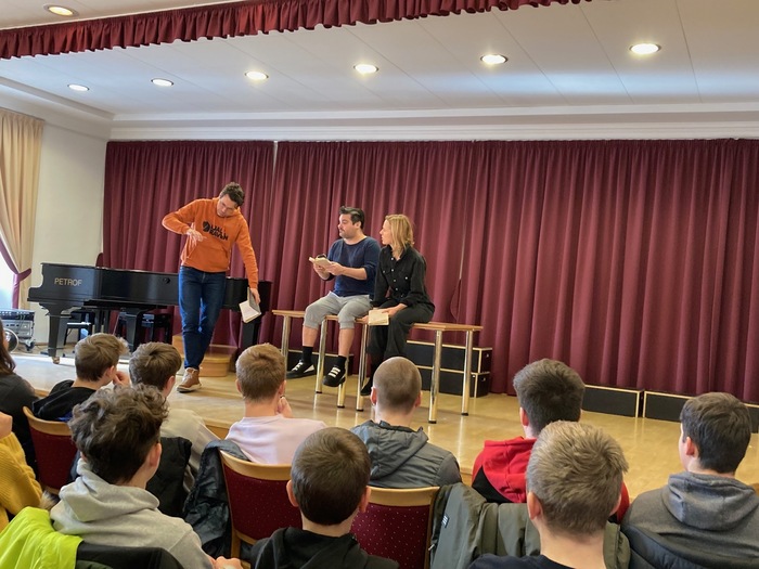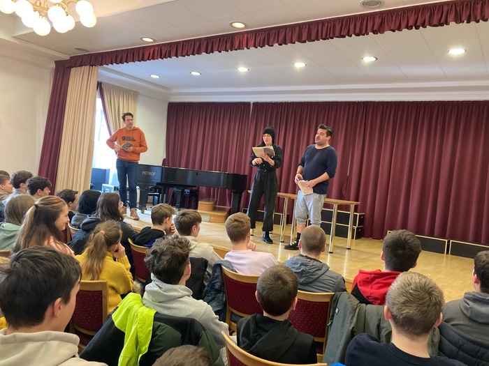 Listování bylo nabídnuto i dvaceti zájemcům z 2. stupně. Herci – Lukáš Hejlík, Alan Novotný a Petra Bučková se stylizovali do postav knihy francouzského spisovatele Mikäela Olliviera „Život k sežrání“, která vypráví o trápení hlavního hrdiny Bena s nadváhou a láskou ke spolužačce Claire.