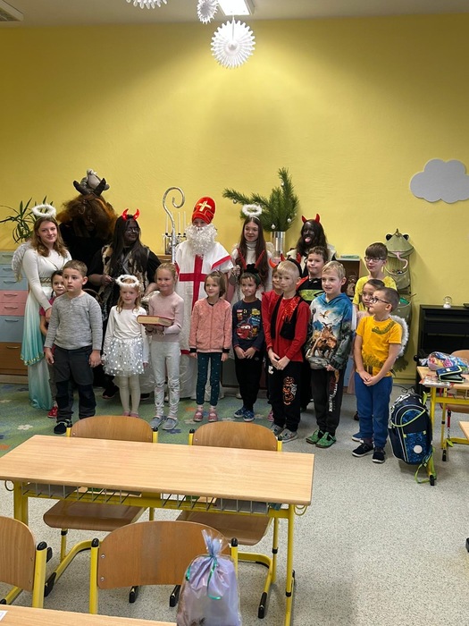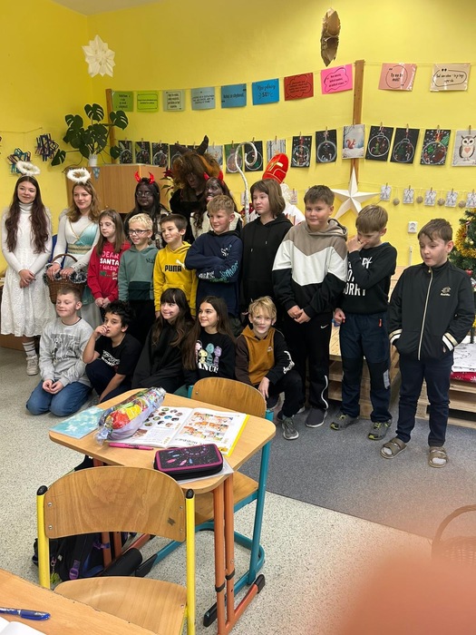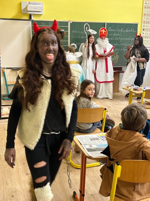 Tradiční mikulášské nadílky se letos opět chopili deváťáci a v kostýmech Mikuláše, čertů a andělů vyrazili, kvůli vysoké nemocnosti až 8. prosince, předat balíčky dobrot dětem na prvním stupni. V každé třídě měly děti připravenou básničku nebo písničku jako poděkování. Všechny děti byly moc statečné a obešlo se to bez slziček.