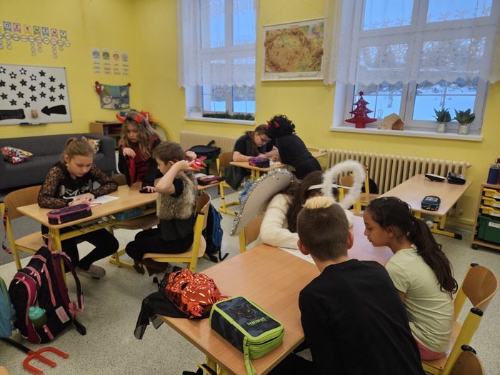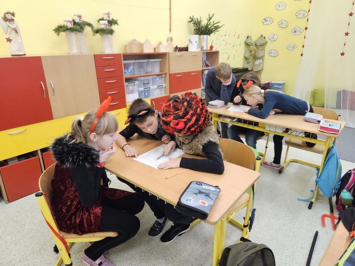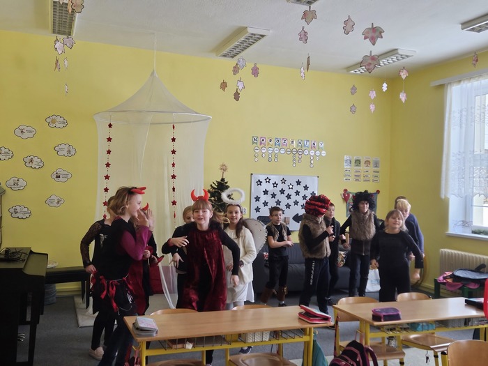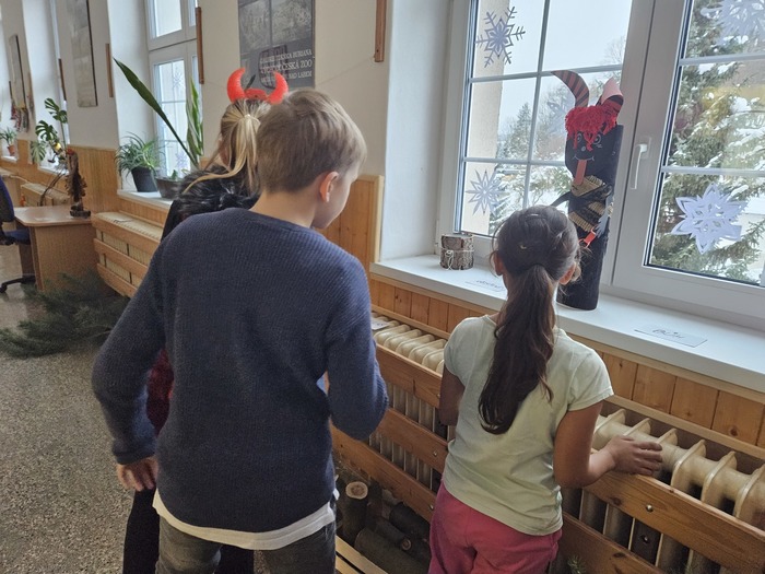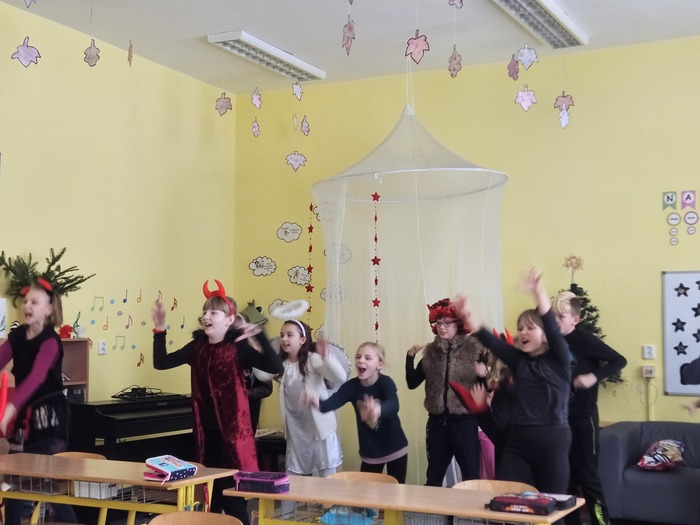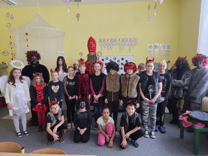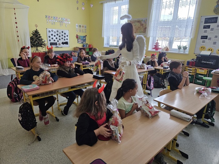 V úterý 5. prosince proběhlo ve čtvrté třídě již tradičně netradiční vyučování v mikulášském duchu. Nejprve si děti zahrály „běhavku“, ve které se seznámily s životem svatého Mikuláše. Poté se věnovaly informacím, jak se slaví tento den v ostatních státech ve světě a zahrály si mikulášskou řetězovku. Další dvě hodiny byly věnované čertům. Děti čekalo čertovské počítání, čtení s porozuměním nebo čertí slovní zásoba. Nechyběl ani čertovský taneček. Odpolední výuka patřila tvoření, děti si vyrobily do třídy betlém.