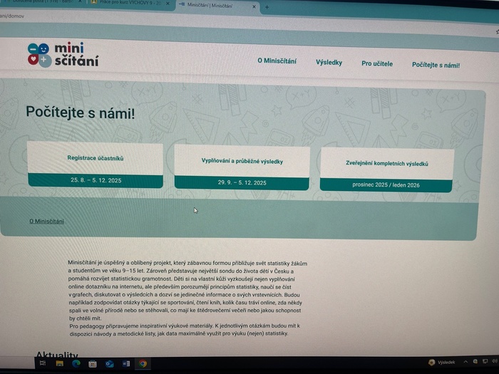 Velkým přínosem je také možnost nahlédnout do toho, jak podobná šetření probíhají v reálném životě. Výsledky Minisčítání, které končí 5. 12. 2025, budou následně zpracovány a porovnány s daty z celé republiky. Díky tomu uvidí žáci, jak jejich třída i škola zapadají do celkového obrazu.