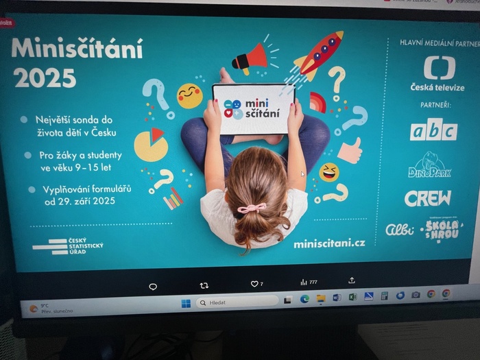 V týdnu od 29. září do 2. října 2025 se žáci 5. až 9. třídy naší školy zapojili do celostátního projektu Minisčítání 2025, který pořádá Český statistický úřad.