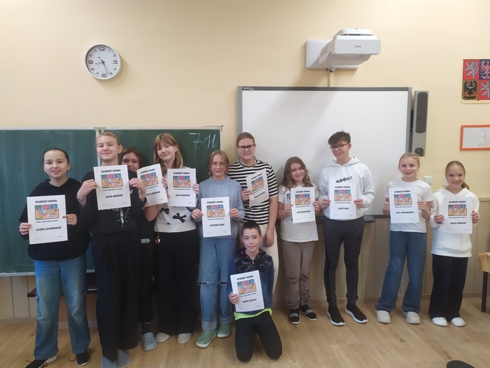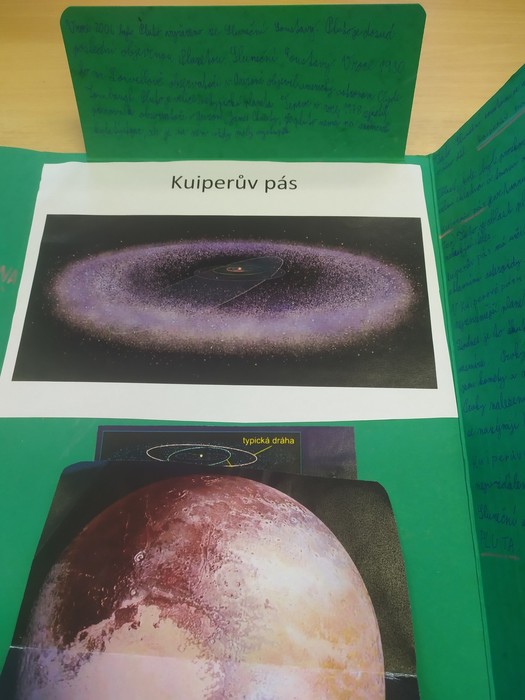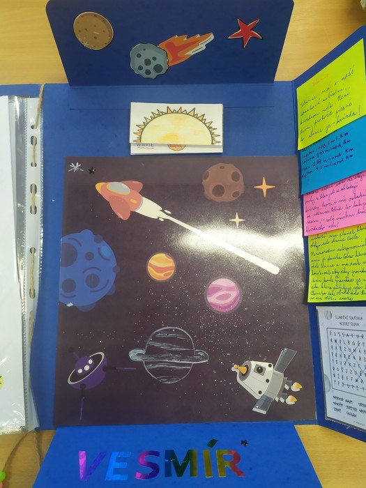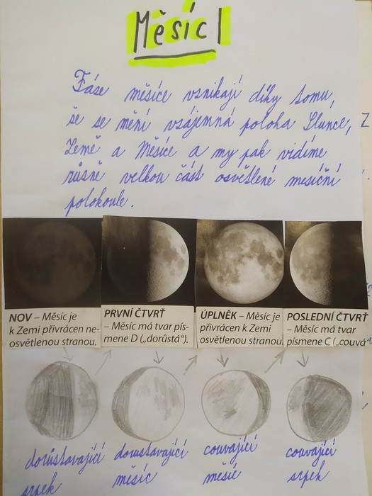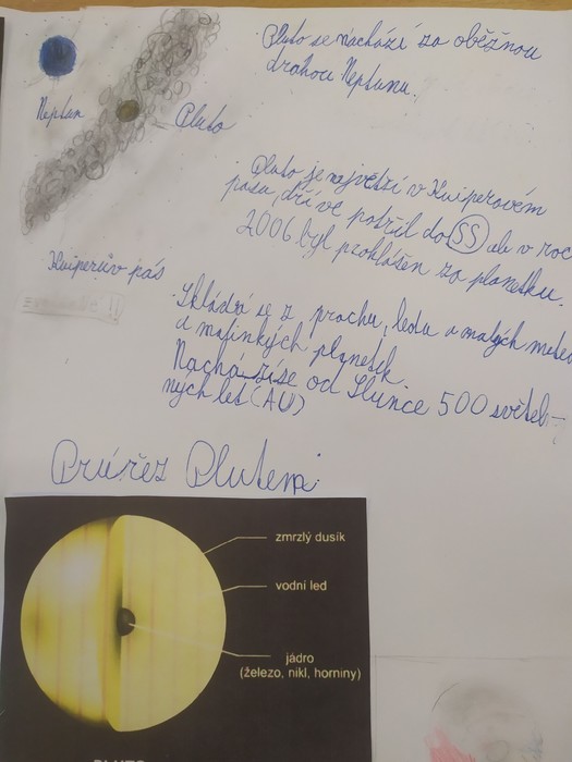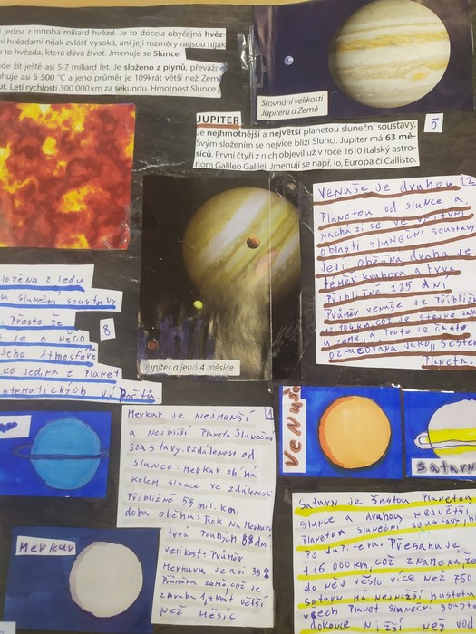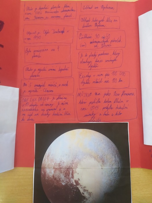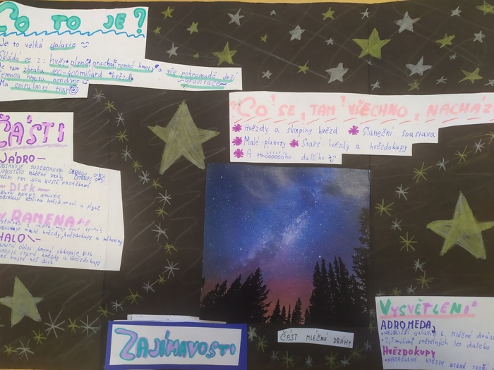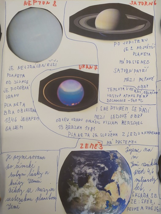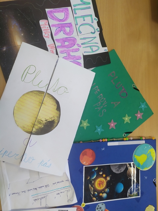 Pěkné práce odevzdali Daniela Jarošová, Terezie Němcová, Lukáš Pánik, Aneta Janíčková (Sluneční soustava), Aneta Dvorská (Měsíc), Alena Knížková (Mléčná dráha), Eliška Lochmanová, Kateřina Černá, Jakub Bazalka, Sofie Svojanovská (Pluto a Kuiperův pás) a Aneta Marčišová (Souhvězdí). Díky samostatné tvorbě se seznámili s kapitolou „vesmír“ v rozmanitých tématech.