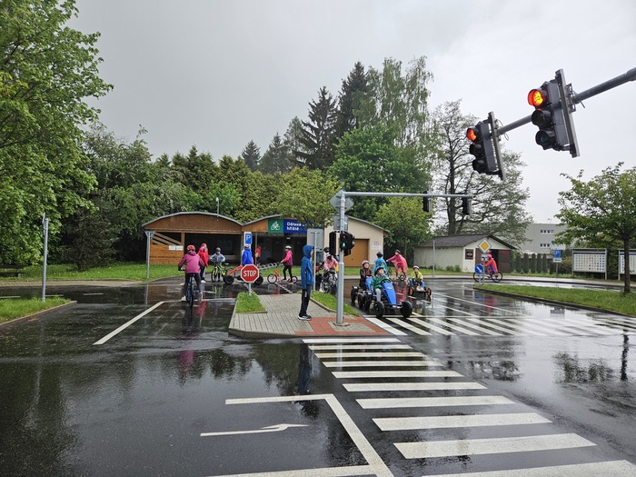 Žáci 3., 4. a 5. třídy vyrazili autobusem do Svitav, aby si v rámci dopravní výchovy zopakovali pravidla bezpečného pohybu. Jako účastníci silničního provozu se potýkali s dopravními situacemi, které je mohou běžně potkat (jízda po kruhovém objezdu, železniční přejezd se závorami, odbočování, jízda a přecházení podle semaforů, správné předjíždění, objíždění překážek s dodržováním předpisů a respektováním dopravních značek). I přes nepřízeň počasí si to všichni moc užili.