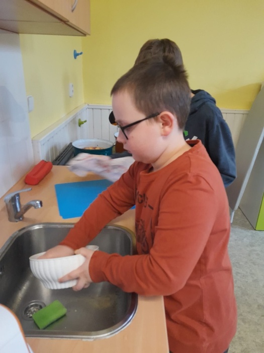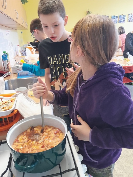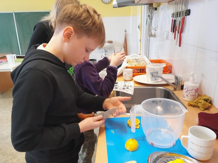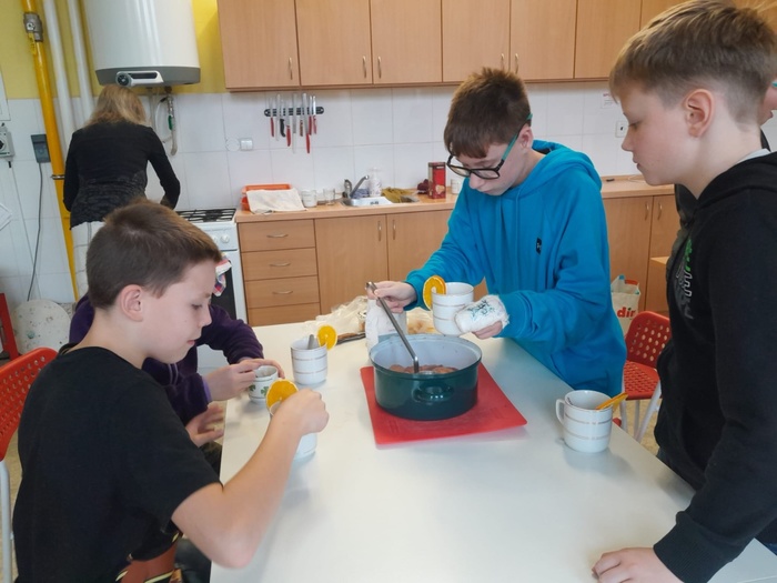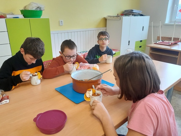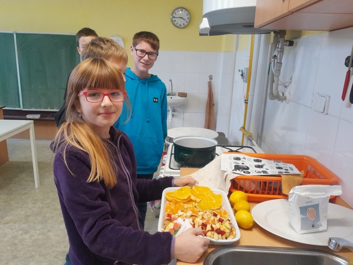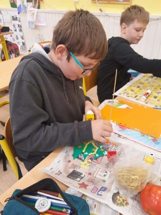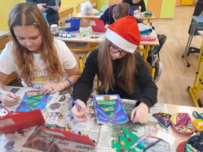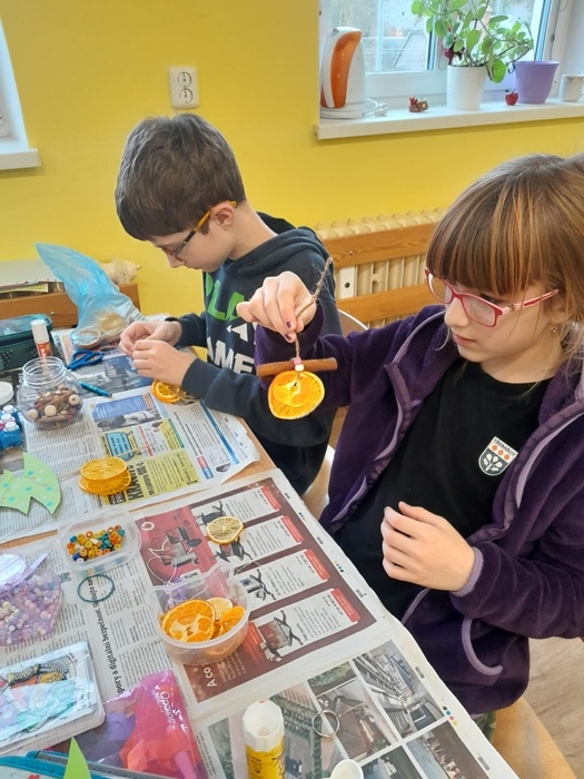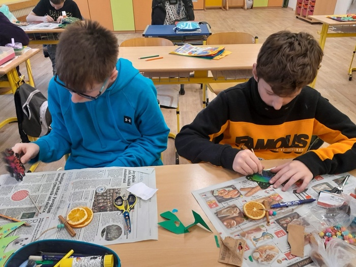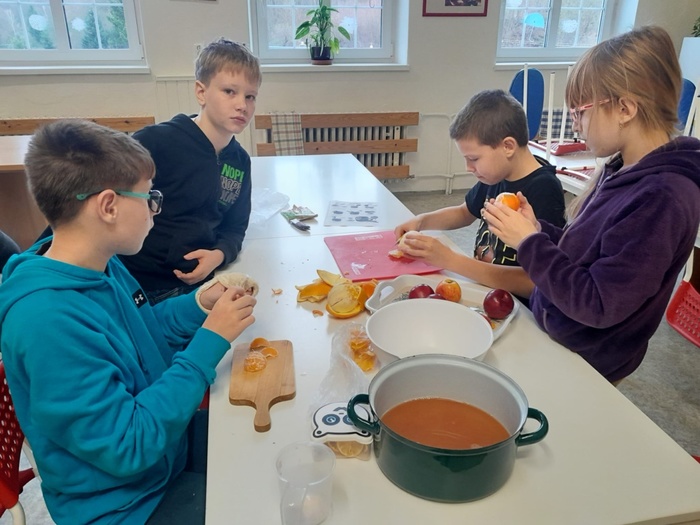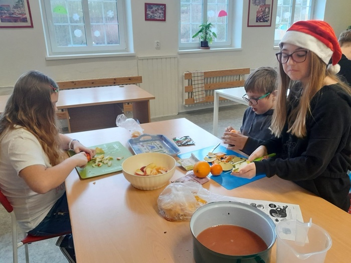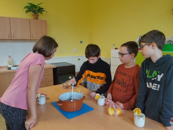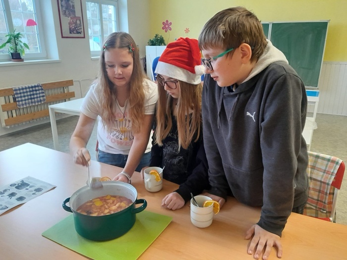 Páťáci si zpříjemnili předvánoční čas tematickým dnem Vánoční tvoření. Ve skupinkách si podle receptu a kresleného výrobního postupu uvařili voňavý punč. Každý si vytvořil zápich do květináče, ozdobičky na stromeček a nakreslil pěkné přáníčko.