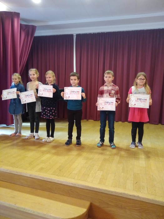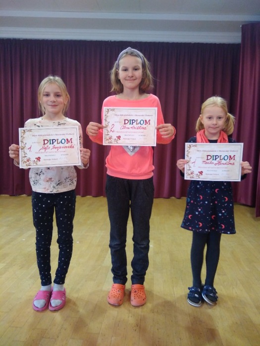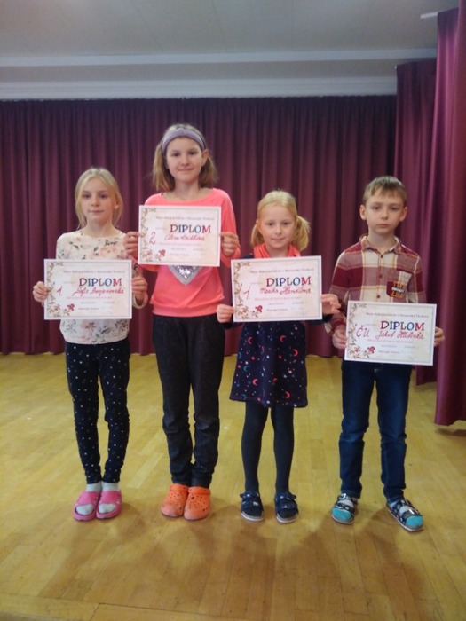 V pondělí 12. února 2024 se konalo v Moravské Třebové Oblastní kolo recitační soutěže. Naši školu reprezentovali tito žáci: z 1. ročníku Marička Handlová, Kryštůfek Novotný a Amálka Štarmanová, ze 3. ročníku Terezka Hradilová a Kubík Hlubinka, ze 4. ročníku Kačka Černá, Sofinka Svojanovská a Alenka Knížková.