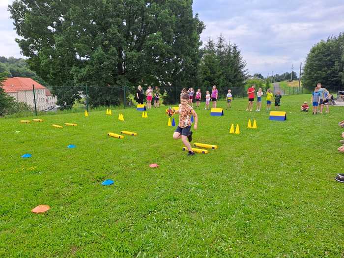 Pak už propukl opravdový sportovní souboj, kde bylo potřeba ukázat hbitost, přesnost, vytrvalost a týmového ducha. Děti se navzájem povzbuzovaly a přály všem týmům úspěch. Stopky ovšem měřily přesně, a tak vítězný tým mohl být jen jeden. Z diplomů a fidorkových medailí se těšili také sportovci na druhém a třetím místě a malá sladkost zbyla i na všechny ostatní.