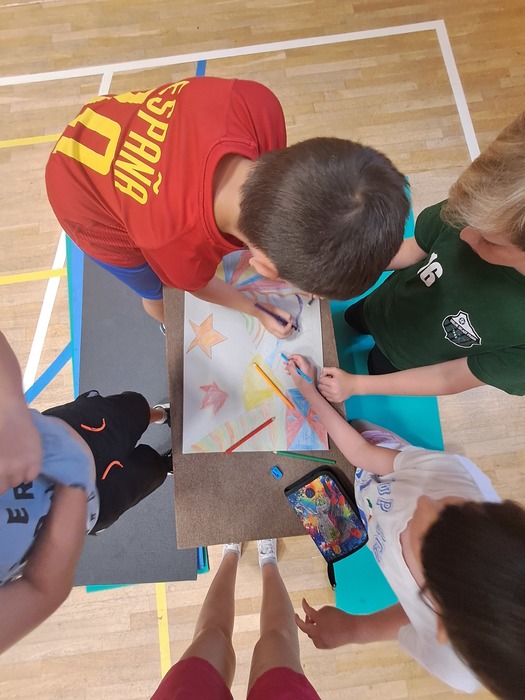 Letní olympijské hry v Paříži se rychle blíží, a proto se žáci a učitelky na prvním stupni rozhodli, že si takové hry také uspořádají. Děti byly rozlosovány do dvanácti družstev napříč všemi třídami. Vymyslely si vlastní jména států a nakreslily jejich vlajky. Nechyběl slavnostní nástup na stadion a štafetový běh s olympijskou pochodní.