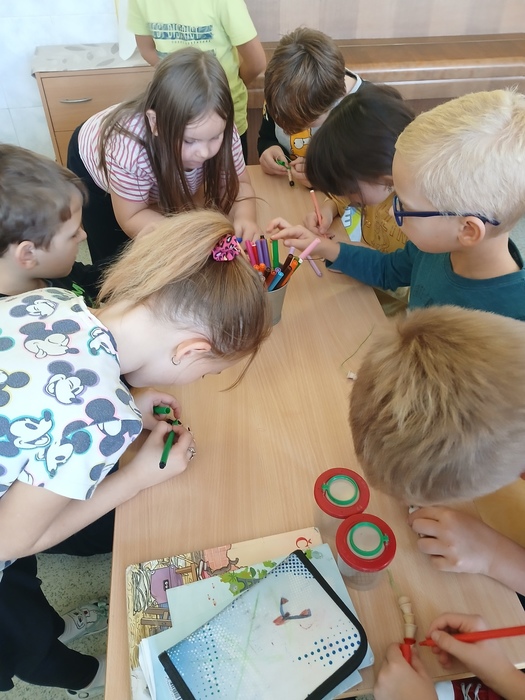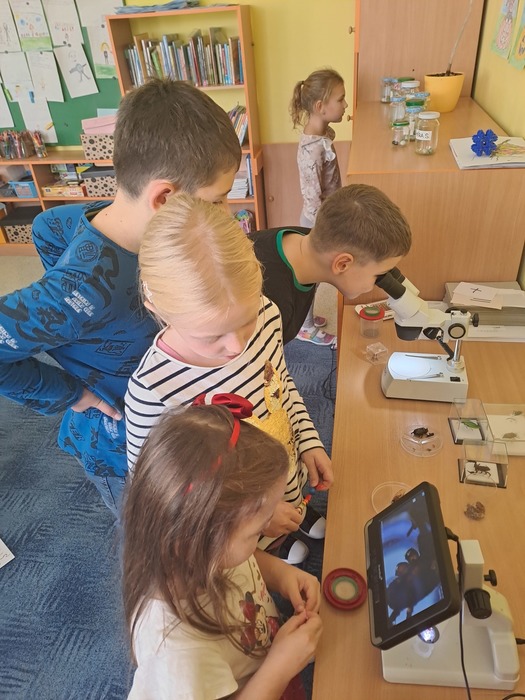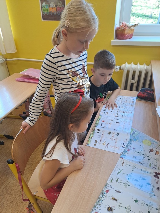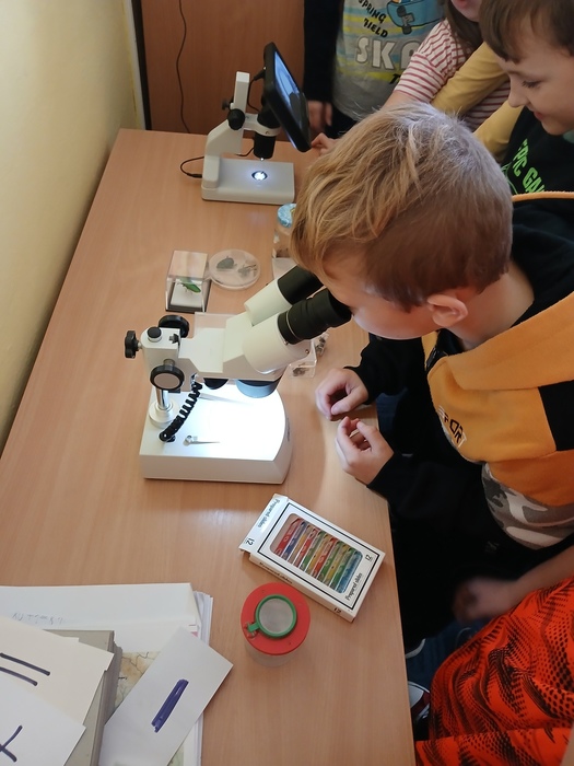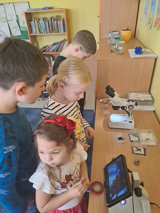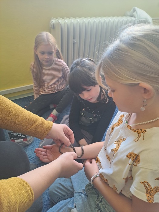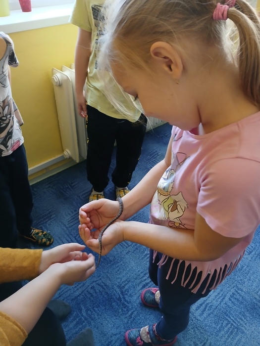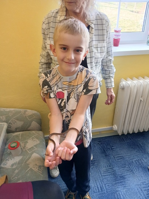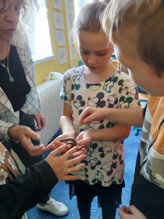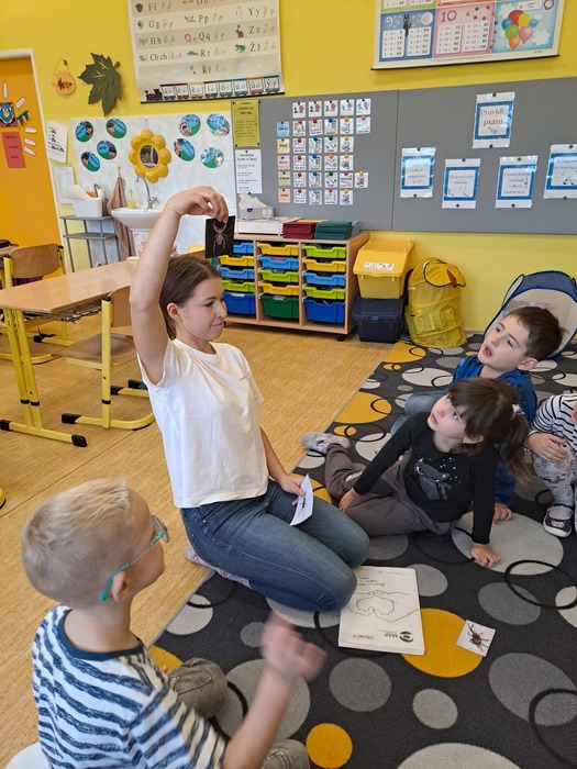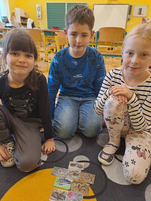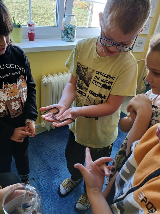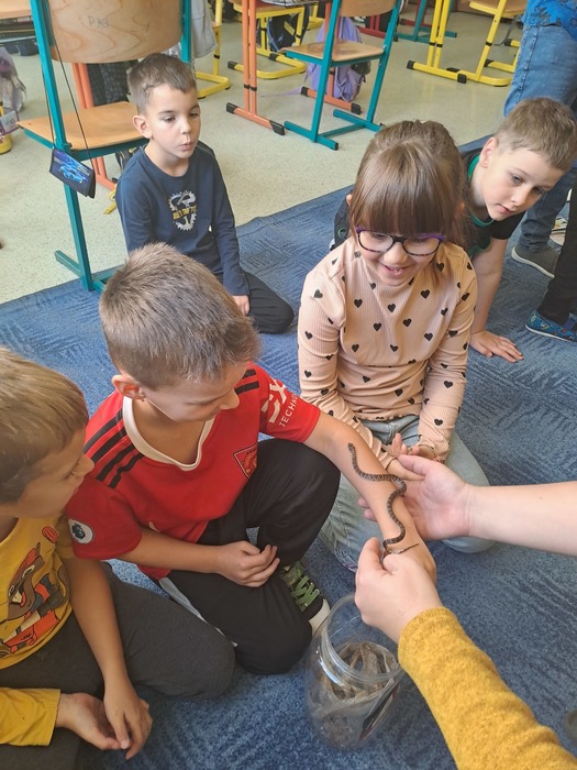 Různými aktivitami se děti seznámily s druhy pavouků a hadů, které u nás můžeme potkat. Zahrály si hru "Pavučina", hmatem poznávaly, co je schované v pytlíkách (např. srst z lamy, …). V prostorách tříd, chodeb a šaten hledaly živé pavouky, což byl trochu problém, ale nakonec se přece jen povedlo najít tzv. třesalku. Pod mikroskopem mohli žáci vidět různý hmyz a části těl drobných živočichů, vyrobili si z korálků hada. Pro některé děti bylo největším zážitkem setkání s mládětem užovky červené. Většina z nich se nebála osobního kontaktu s tímto krásným zvířetem.